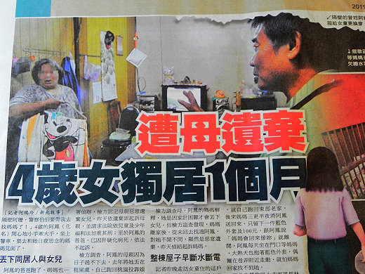 剛剛回應完流浪狗的文章﹐ 現在又看到這個消息。人生的黑暗面不停上演﹐但誰愛聽令人悲傷的消息﹖ 這小女孩的父親上那兒去了﹖這對爸媽應該比照台灣對流浪狗的處理。