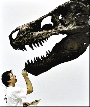 近日美国科学家通过蛋白质化学分析的方法,为一头生活在8500万年前的霸王龙找到了现代的“近亲”——鸡。研究发现,霸王龙骨骼中的蛋白质结构与鸡非常接近,“可以说,它们算得上一对‘表兄妹’。”