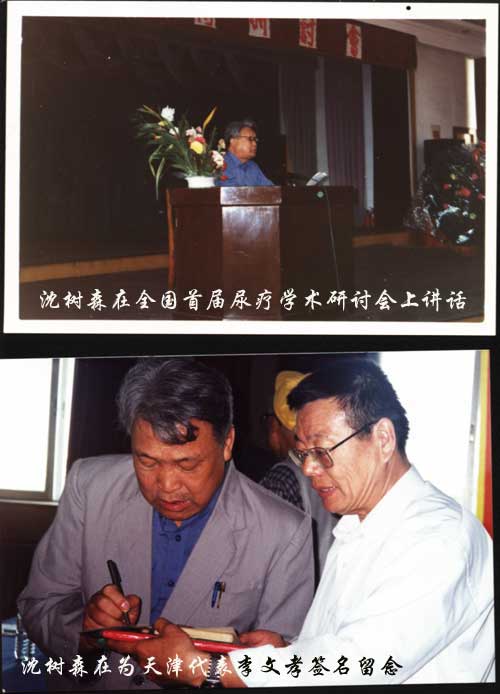 尤其值得赞叹的是受郭峰老委托筹办“全国第二届尿疗学术研讨会”,在一无办会经验,二无办会经费,三无办会场所的情况下,千方百计、排除万难,求朋友,靠同事,自己掏腰包。使得会议如期召开,圆满结束。并争当“秘书长”再次承但编写“会议纪要”的“苦差事”。这种为了尿疗事业全心全意的敬业精神是所有尿疗推广者学习的楷模,在现代中国尿疗史的功劳簿上,将永远记载沈树森的这些“可歌可泣”的动人事迹。