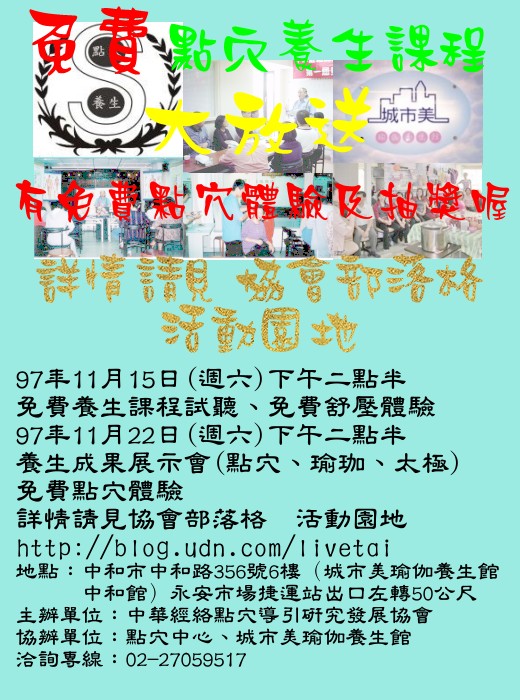 協辦單位:點穴中心、 城市美瑜伽養生館