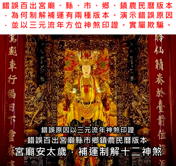 - 錯誤百出丙午年苗栗縣白沙屯拱天宮安斗,安太歲,光明燈,制解補運十二神煞讓人瞠目結舌,以協紀辨方書流年神煞,道破並說明其錯誤原因精解影片。
