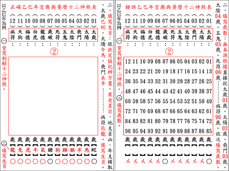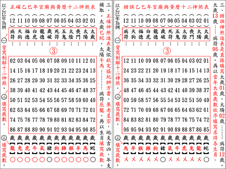 錯誤百出宮廟、縣、市、鄉、鎮農民曆版本,為何有兩種版本,演示錯誤原因並以三元流年方位神煞印證。