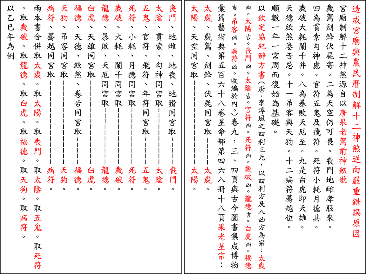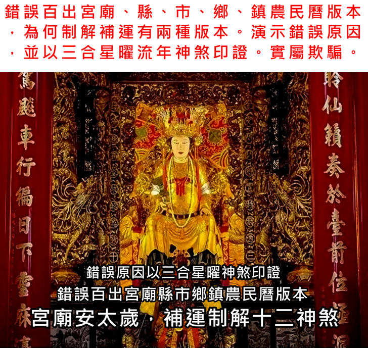 錯誤百出宮廟、縣、市、鄉、鎮農民曆版本,為何有兩種版本,演示錯誤原因並以三合星曜流年神煞印證。
