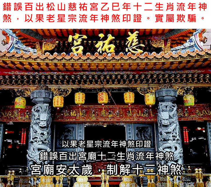 錯誤百出松山慈祐宮乙巳年宮廟十二生肖流年神煞精解影片,以果老星宗流年方位神煞印證。
