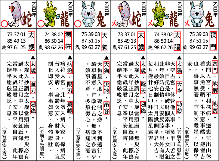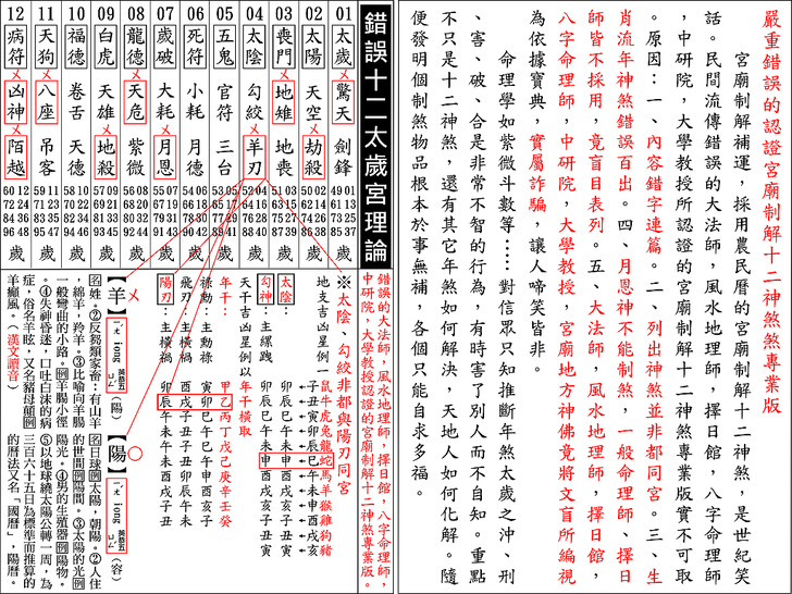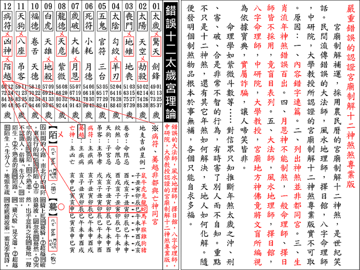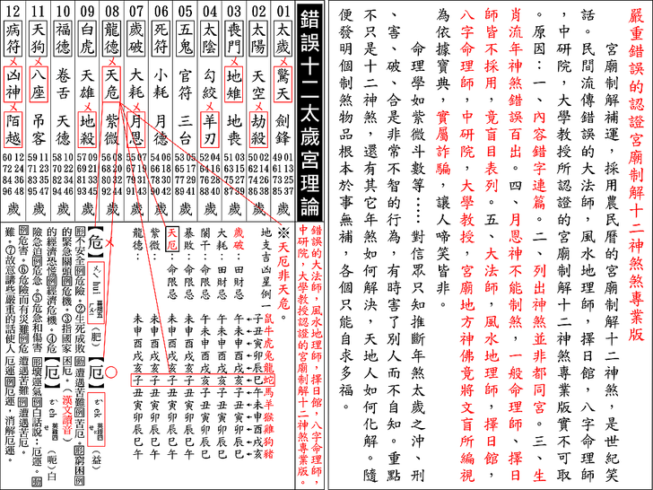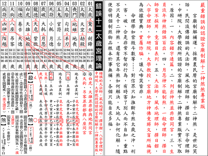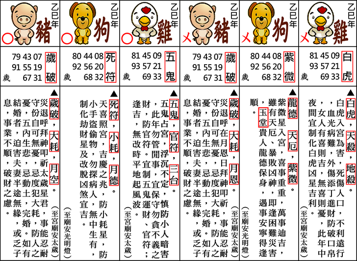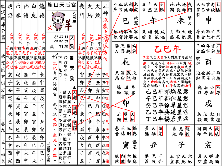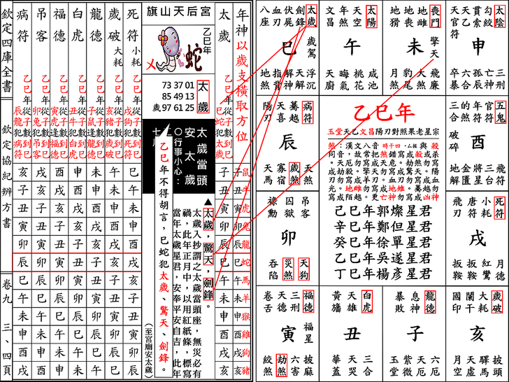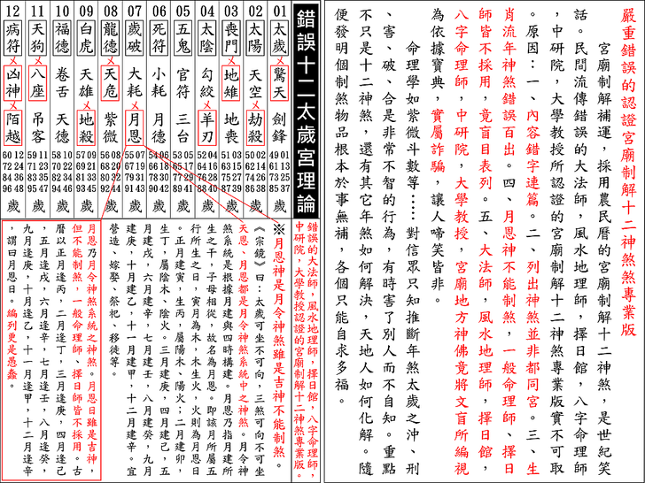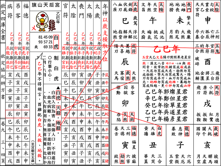 錯誤百出旗山天后宮乙巳年宮廟十二生肖流年神煞精解影片,以協記辨方書流年神煞印證。