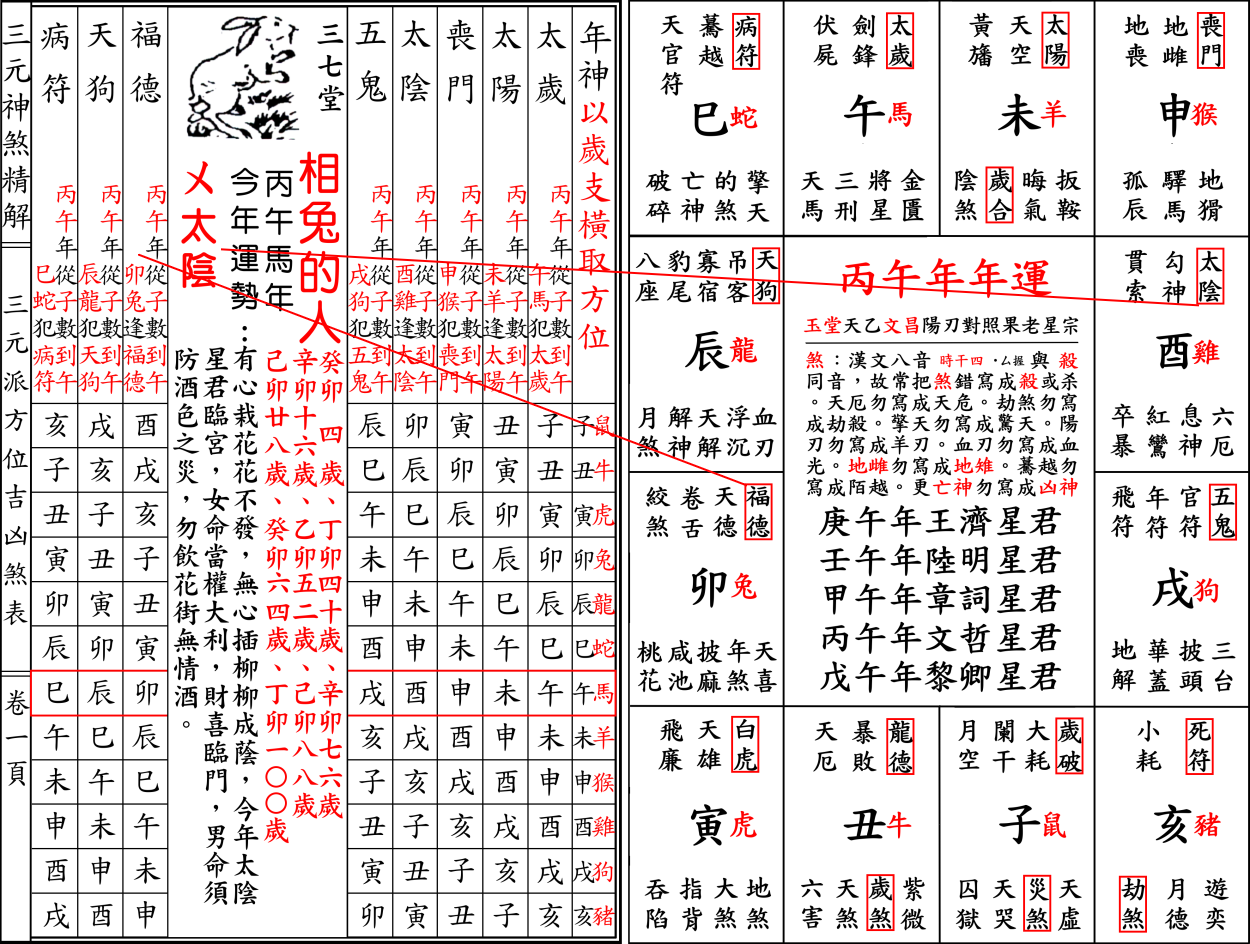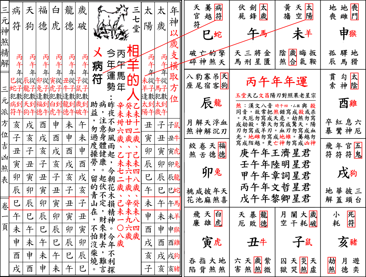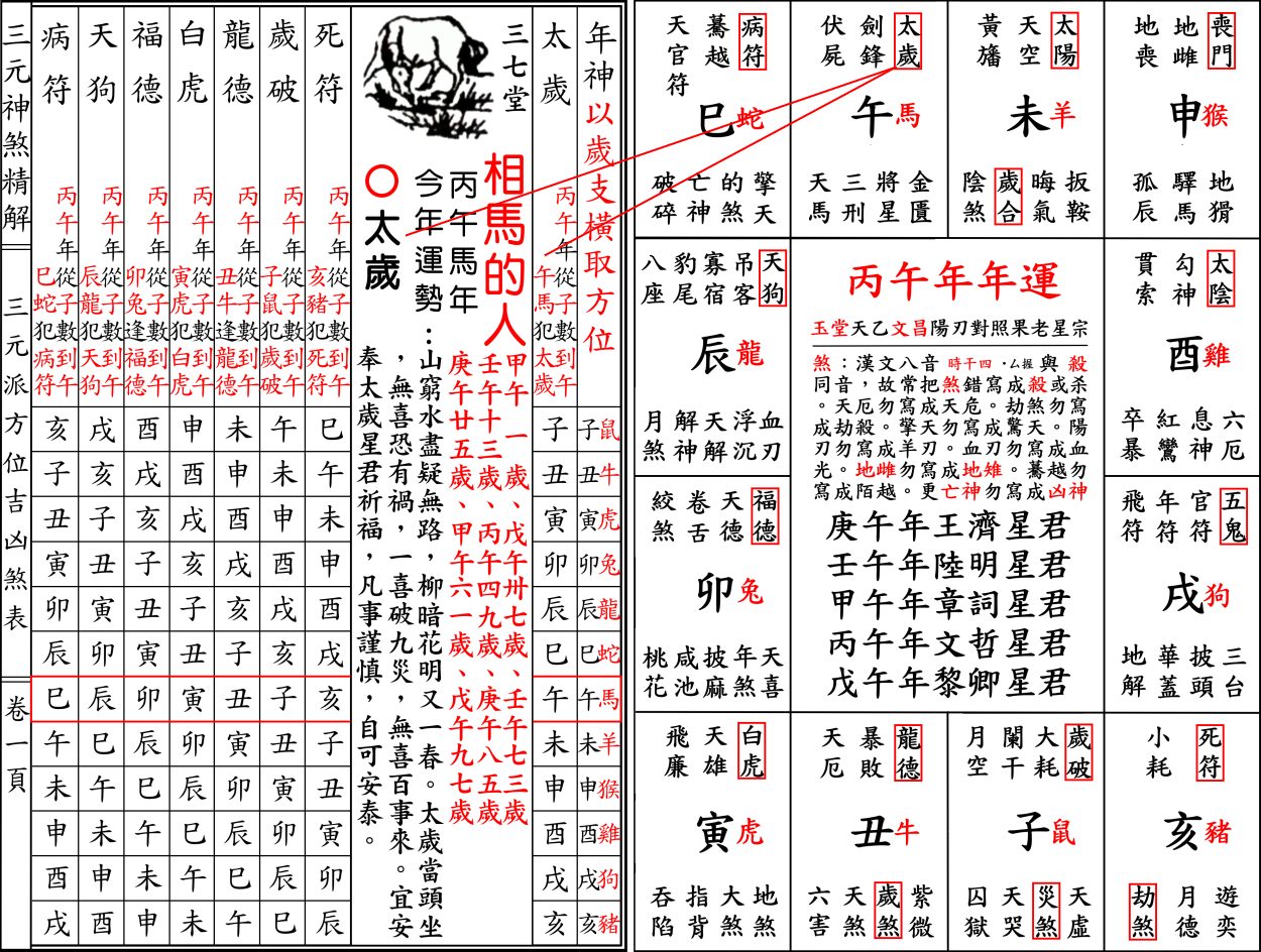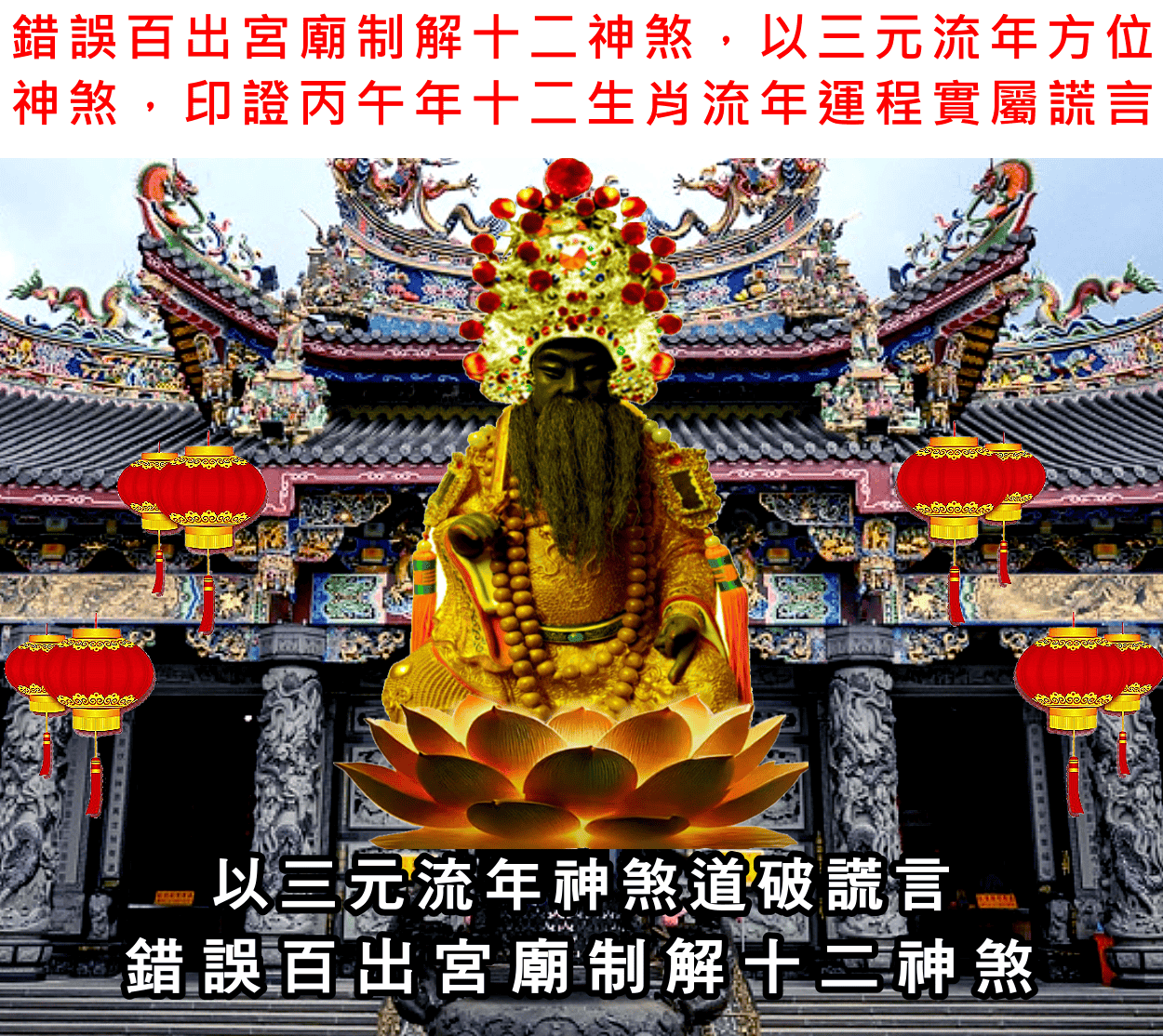 錯誤百出宮廟制解十二神煞,以三元流年方位神煞,印證丙午年十二生肖流年運程實屬謊言。