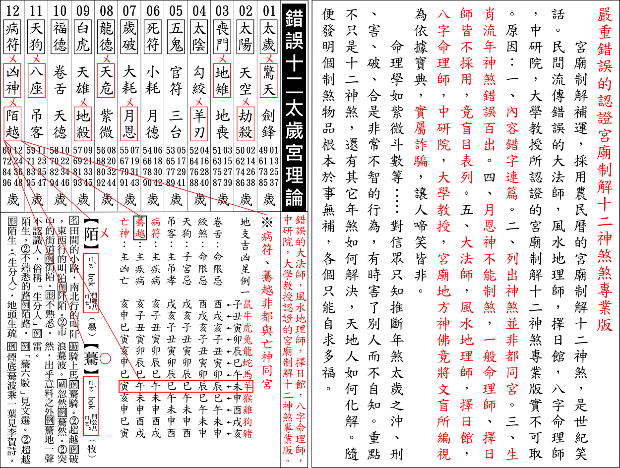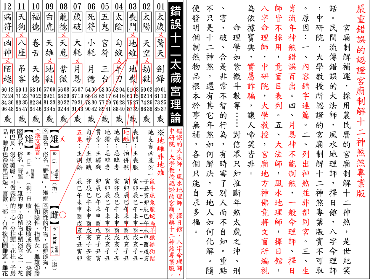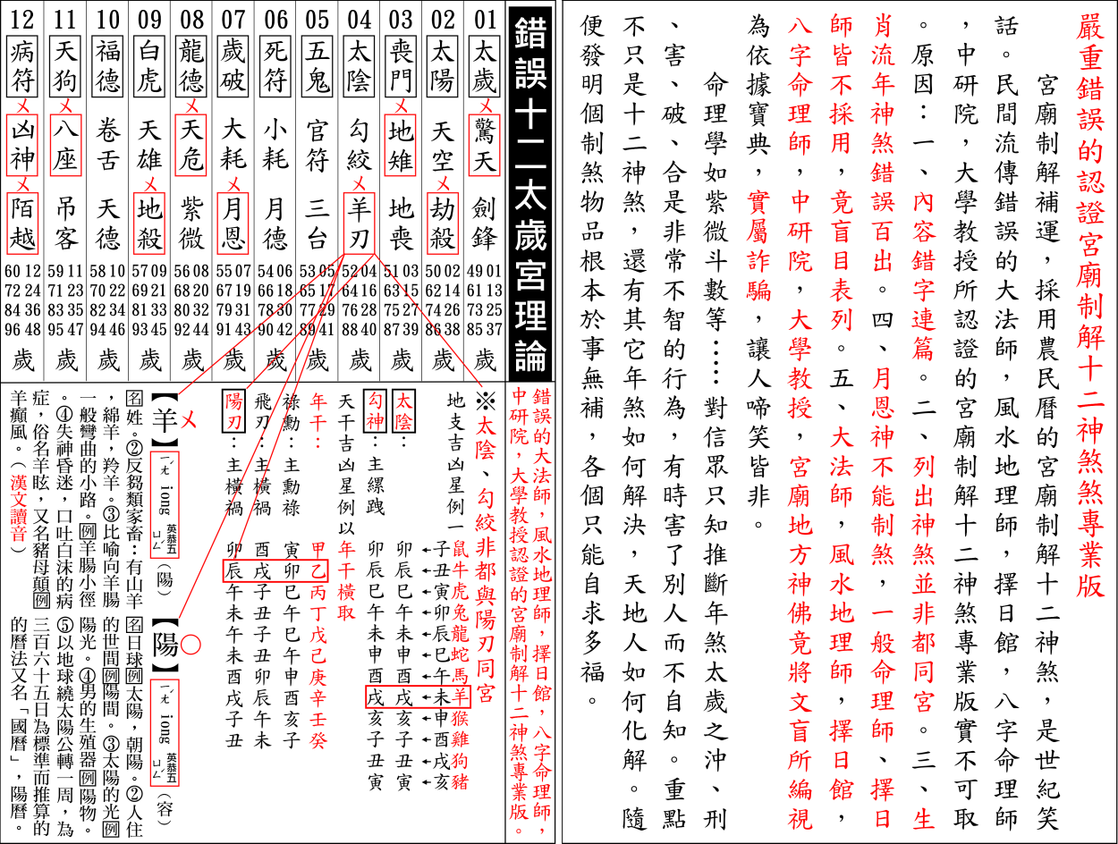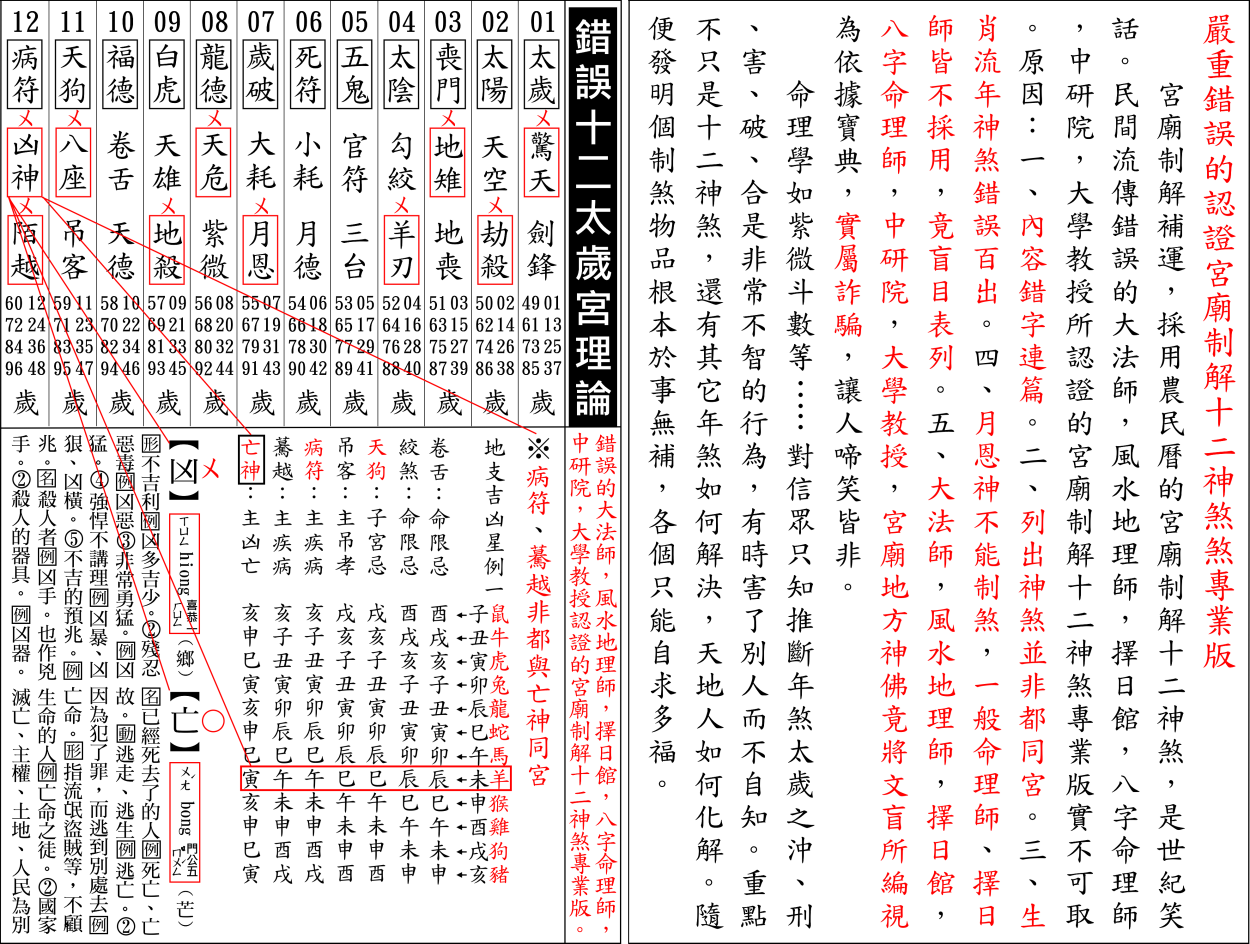 錯誤百出宮廟制解十二神煞,以三合星曜流年神煞,印證丙午年十二生肖流年運程實屬謊言。
