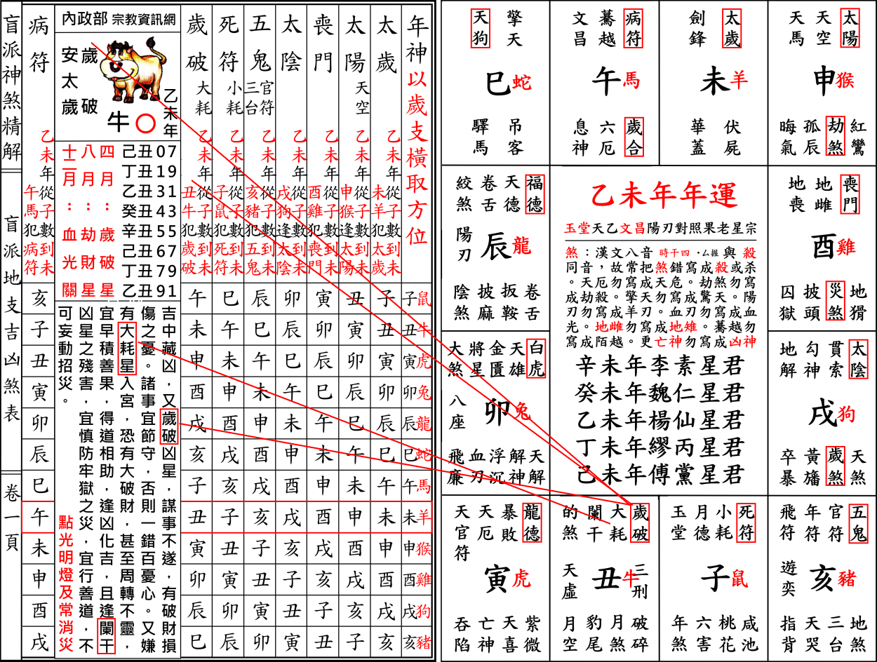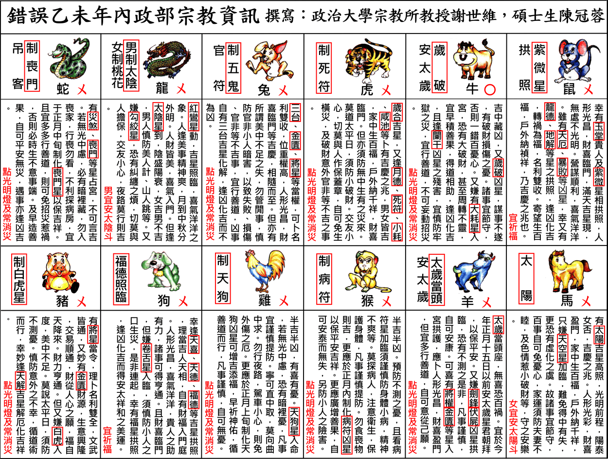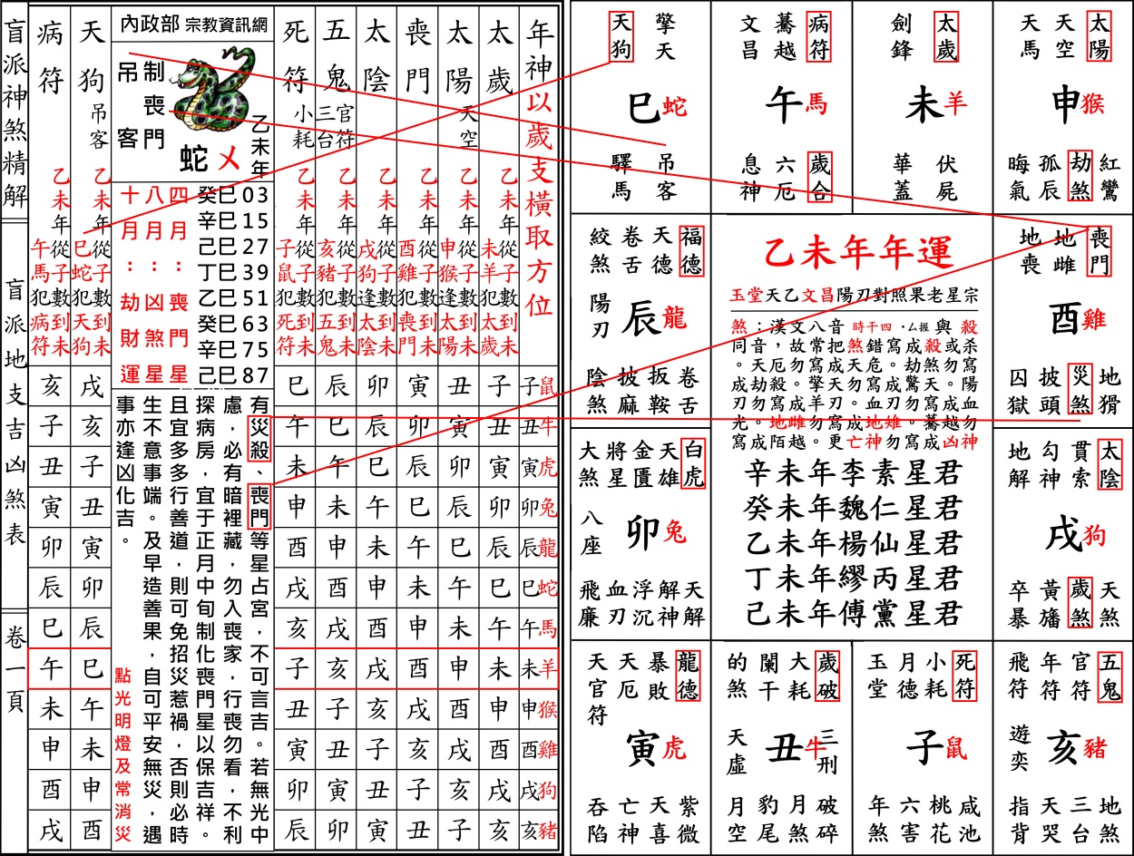 錯誤百出內政部宗教資訊網乙未年制解十二神煞,以協紀辨方書流年神煞印證十二生肖流年運程實屬謊言。