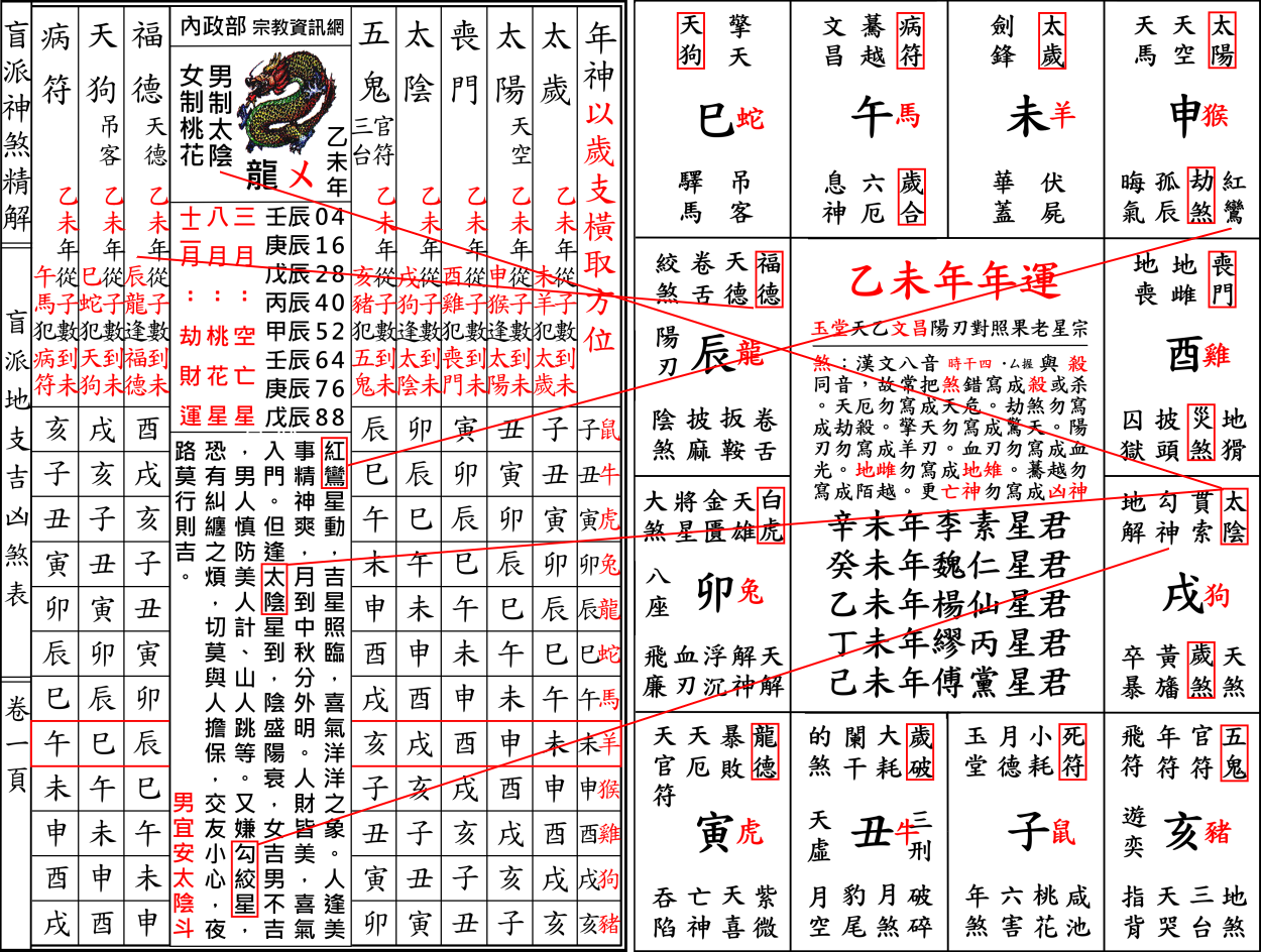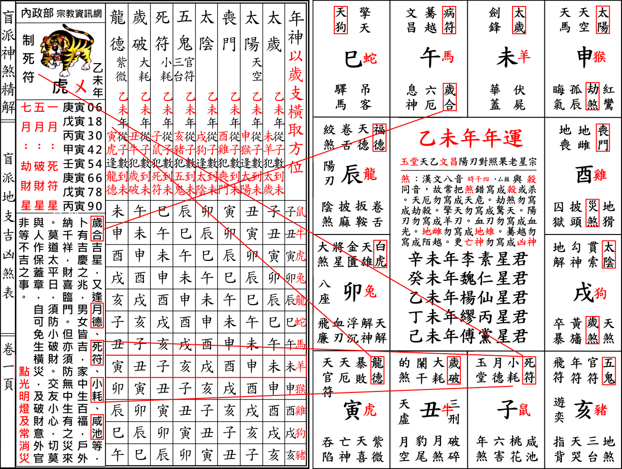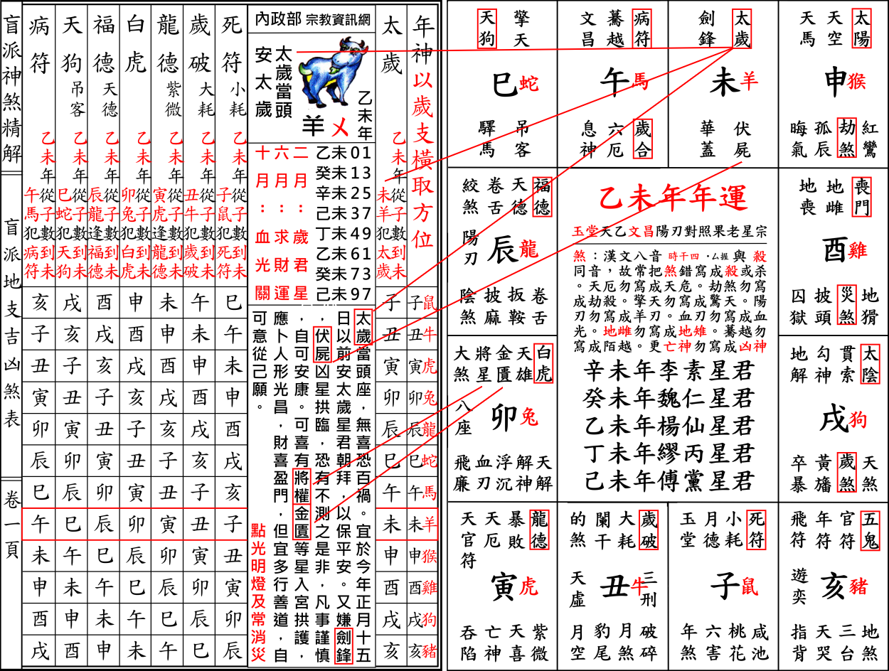 錯誤百出內政部宗教資訊網乙未年制解十二神煞,以協紀辨方書流年神煞印證十二生肖流年運程實屬謊言。