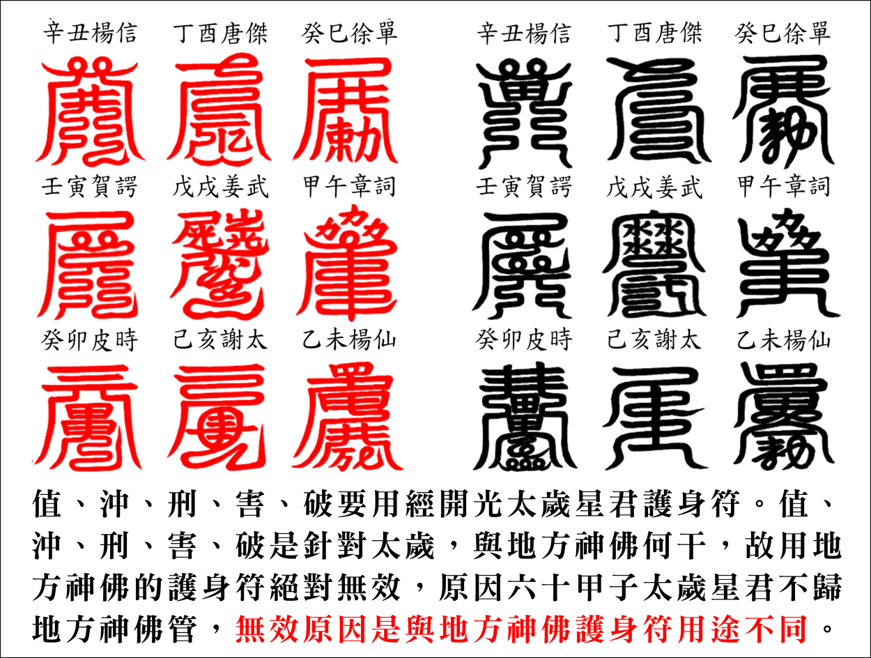 過年安太歲光明燈,宮廟太歲符,太歲燈,元辰燈,七星燈,太歲星君名諱,十二神煞制解〈不是祭改〉五鬼天狗白虎與補運,山海鎮錯誤百出。