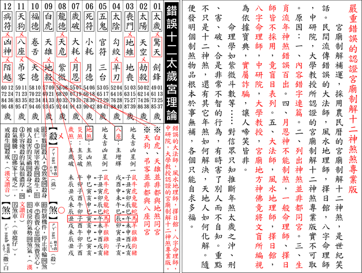 - 錯誤百出丙午年苗栗縣白沙屯拱天宮安斗,安太歲,光明燈,制解補運十二神煞讓人瞠目結舌,以盲派流年吉凶神煞,道破並說明其錯誤原因精解影片。