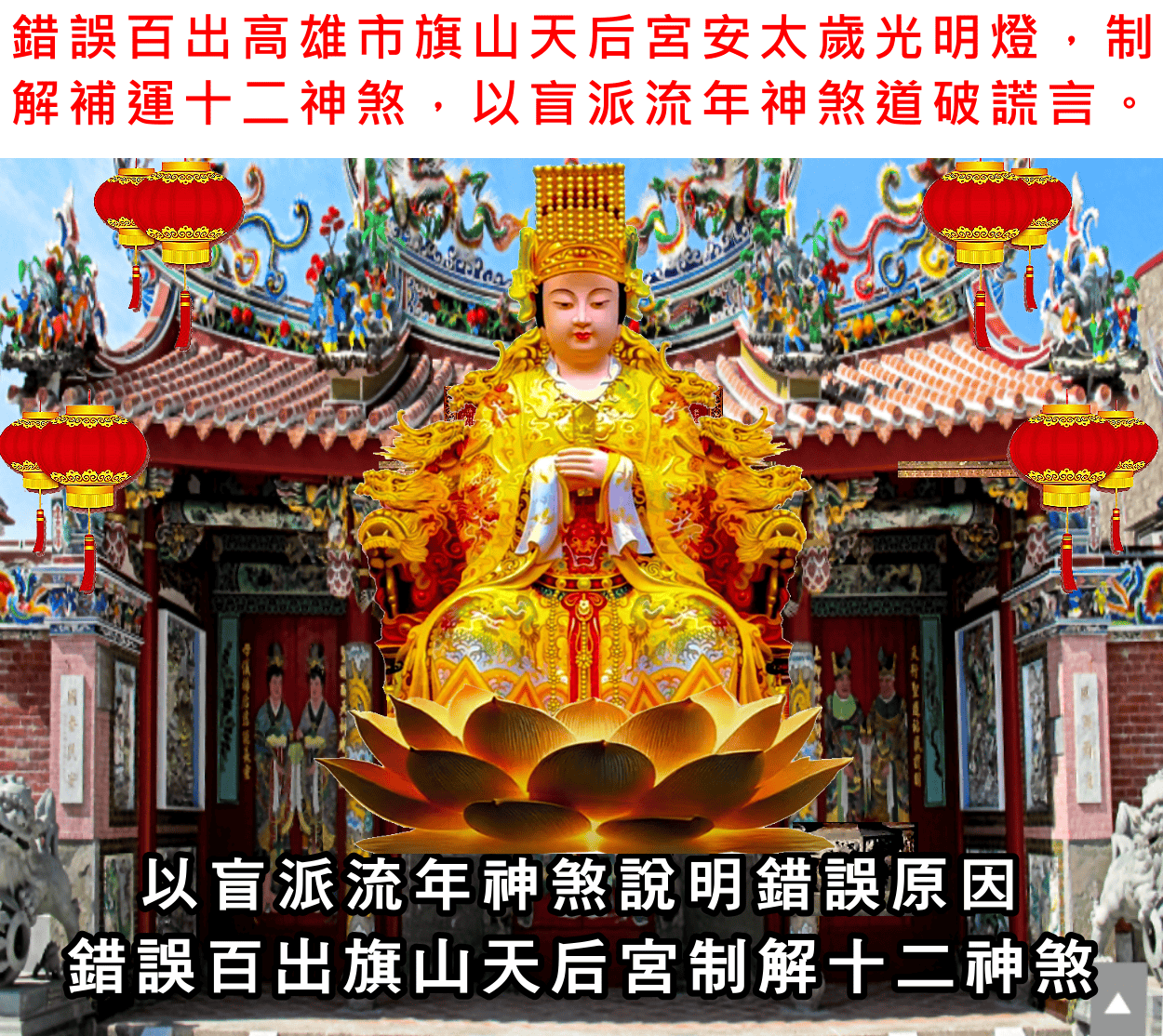 錯誤百出丙午年高雄旗山天后宮安斗,安太歲,光明燈,制解補運十二神煞讓人瞠目結舌,以盲派流年吉凶神煞,道破並說明其錯誤原因精解影片。