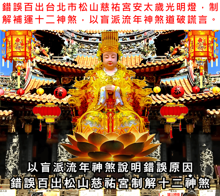 錯誤百出丙午年台北市松山慈祐宮安斗,安太歲,光明燈,制解補運十二神煞讓人瞠目結舌,以盲派流年吉凶神煞,道破並說明其錯誤原因精解影片。