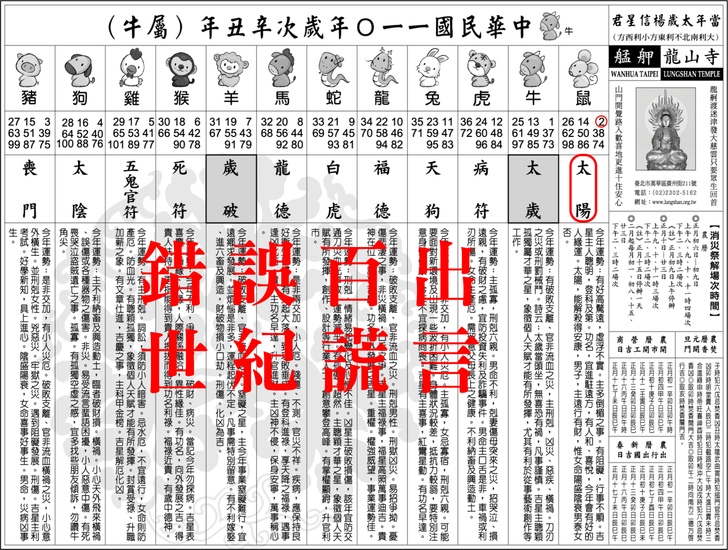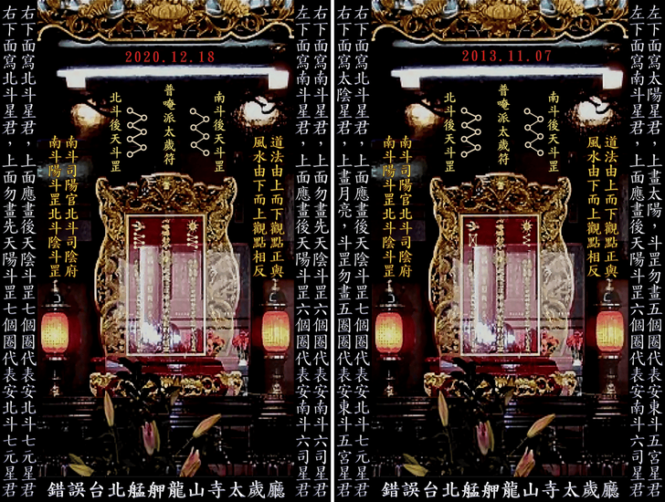 上一則: 錯誤百出丙午年台北市艋舺龍山寺安斗,安太歲,光明燈,制解補運十二神煞讓人瞠目結舌,以協紀辨方書流年神煞,道破並說明其錯誤原因精解影片。下一則: 錯誤百出丙午年台北市艋舺龍山寺安斗,安太歲,光明燈,制解補運十二神煞讓人瞠目結舌,以三元流年方位神煞,道破並說明其錯誤原因精解影片。