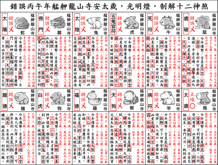 - 錯誤百出丙午年苗栗縣白沙屯拱天宮安斗,安太歲,光明燈,制解補運十二神煞讓人瞠目結舌,以協紀辨方書流年神煞,道破並說明其錯誤原因精解影片。