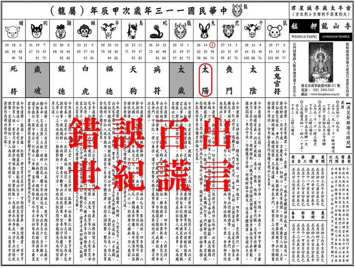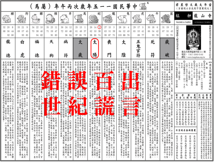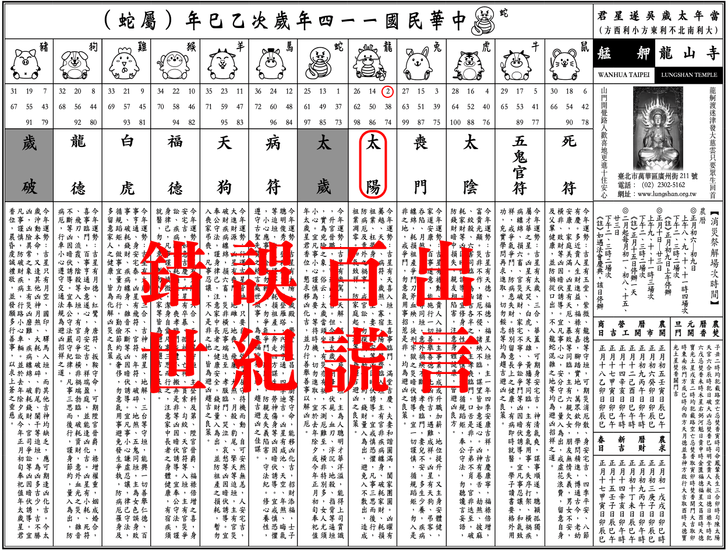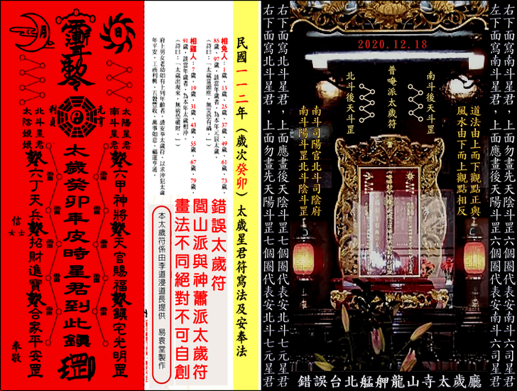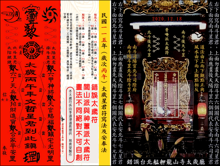 上一則: 錯誤百出丙午年台北市艋舺龍山寺安斗,安太歲,光明燈,制解補運十二神煞讓人瞠目結舌,以盲派流年吉凶神煞,道破並說明其錯誤原因精解影片。下一則: 錯誤百出丙午年台北市艋舺龍山寺安斗,安太歲,光明燈,制解補運十二神煞讓人瞠目結舌,以協紀辨方書流年神煞,道破並說明其錯誤原因精解影片。