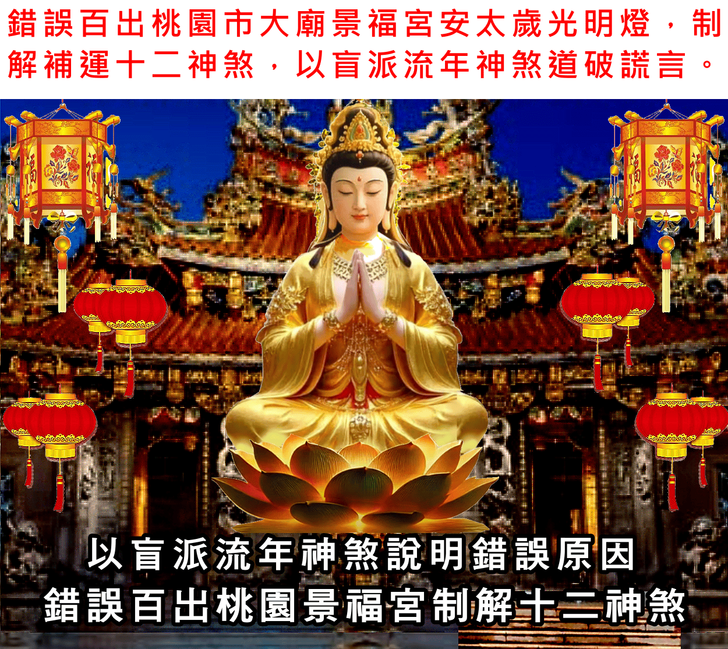 錯誤百出丙午年桃園市大廟景福宮安斗,安太歲,光明燈,制解補運十二神煞讓人瞠目結舌,以盲派流年吉凶神煞,道破並說明其錯誤原因精解影片。