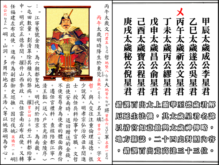 錯誤百出過年安太歲,光明燈所使用的太上靈華至德歲君解厄延生法懺,竟高達33位是錯誤,真讓瞠目結舌,以清宮如意館與太歲神傳略說明錯誤原因精解。