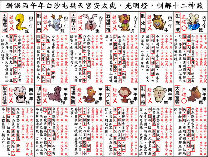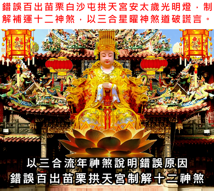 上一則: 錯誤百出丙午年苗栗縣白沙屯拱天宮安斗,安太歲,光明燈,制解補運十二神煞讓人瞠目結舌,以協紀辨方書流年神煞,道破並說明其錯誤原因精解影片。下一則: 錯誤百出丙午年苗栗縣白沙屯拱天宮安斗,安太歲,光明燈,制解補運十二神煞讓人瞠目結舌,以三元流年方位神煞,道破並說明其錯誤原因精解影片。
