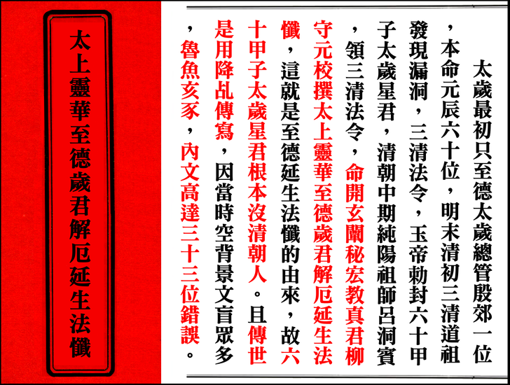 當你看到 太歲燈或太歲符寫文祈星君,那就是錯誤百出安太歲使用的太上靈華至德歲君解厄延生法懺,竟高達33位錯誤,讓人瞠目結舌,竟無人發現的版本。https://blog.udn.com/liyeushyh/184825376