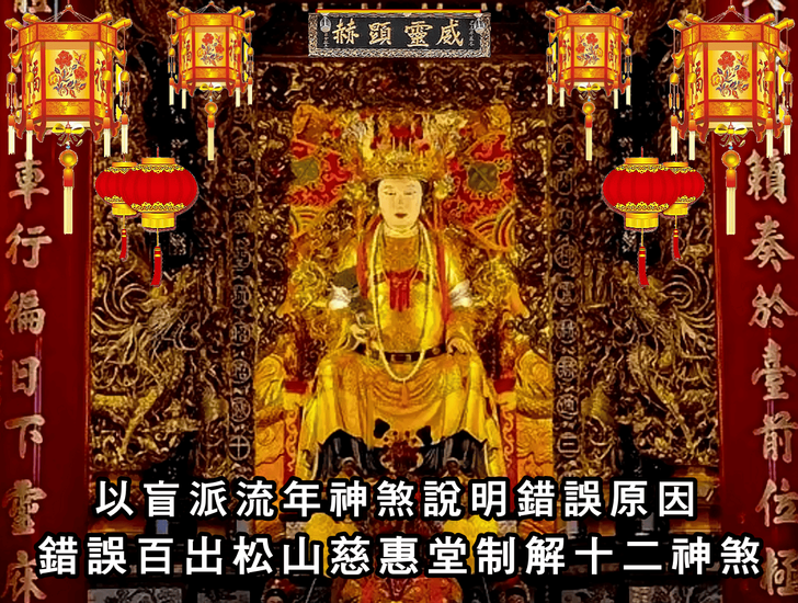 - 錯誤百出丙午年台北市松山慈惠堂安斗燈,太歲燈,光明燈,制解補運十二神煞讓人瞠目結舌,以協紀辨方書流年神煞,道破並說明其錯誤原因精解影片。