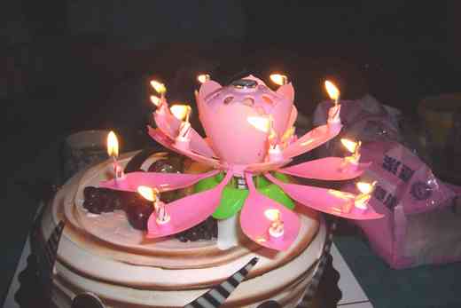 我們有三個人8月生日''我門到新店一家卡拉慶祝''這生日蠟燭還會唱生日歌會唱24小時''給你一整天ㄉ祝福''