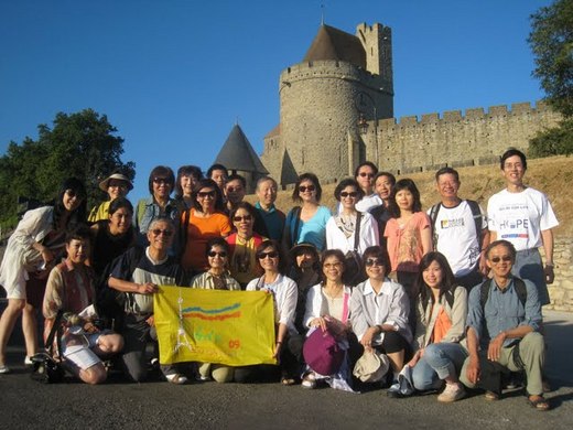 Carcassonne是法國一個保留700多年風貌的中世紀小城也是在歐洲維護最完整的古堡壘城鎮之一.位於法國南部的庇里牛斯山,濱臨地中海與西班牙,每年都吸引無數的遊客到此旅遊。在1997年列入教文組織世界遗產名單中。 凱文科斯納主演的羅賓漢就是在這拍攝的,當晚我們就住在城堡內的Best Western Hotel內,大家興奮不已...雖離家已超過三十小時仍然興致勃勃,放下行李後就急於遊城去了.