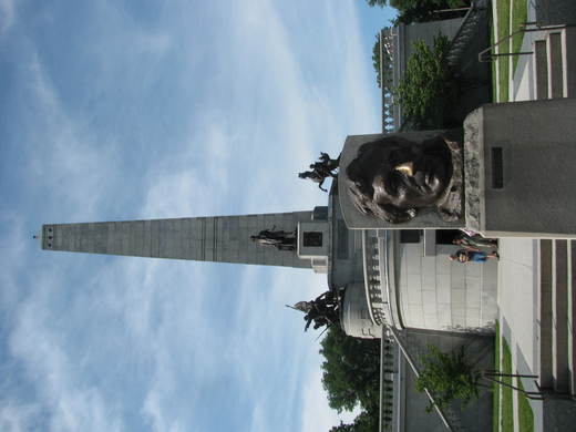伊利諾州州府春田(Springfield),林肯遇刺去世之後,就是葬在春田市內的墓園,由雕刻家Larken Mead設計紀念碑。陵寢於1874年完工。 紀念碑上方有一座林肯的立像,前方有一尊林肯的頭銅像,有趣的是頭像鼻子被遊客摸的特別光亮,合乎我們中國人的習性也許摸摸偉人的像可以沾點光似的。