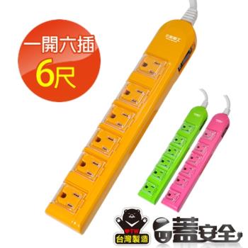 【太星電工】蓋安全彩色一開六插電腦線/3P 15A 6尺 OC61306.CP值超高