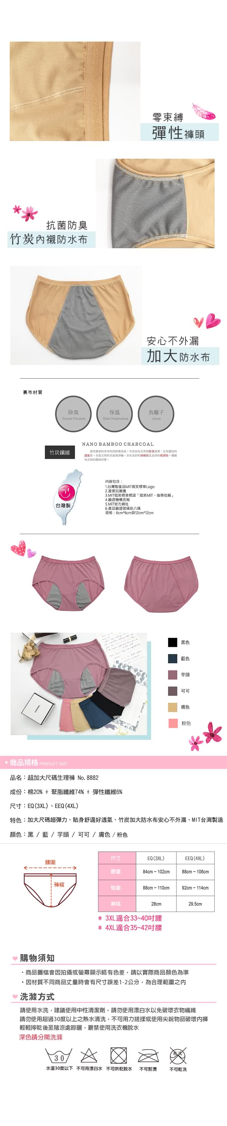 這個內衣品牌子好【席艾妮SHIANEY】女性超加大尺碼 竹炭防水布 夜用型 棉質生理褲 3XL/4XL 微笑MIT台灣製(5件組)你不能錯過