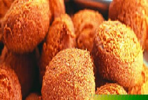 泡水後攪打成糊狀,然後放在一種叫做 dende的棕櫚油裡炸過,
