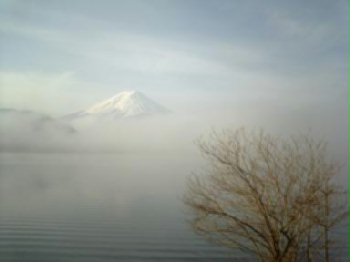 圖片:清晨迷濛的富士山 。