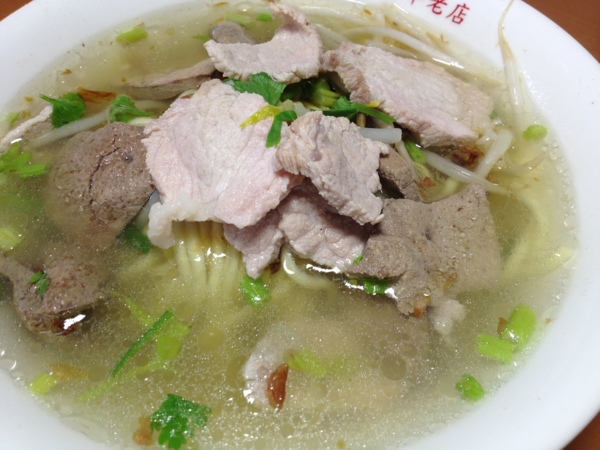 遠近馳名的傳統客家古早味麵食,湯頭鮮美豬肝麵、豬肉麵,