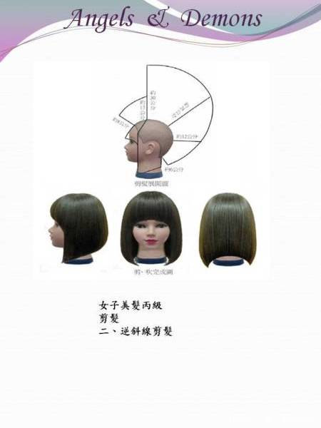 試 題:剪吹髮 二、逆斜線剪法