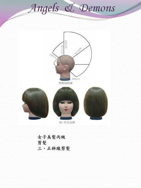 試 題:剪吹髮 三、正斜線剪法