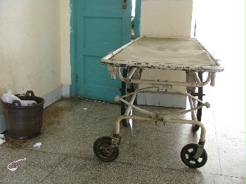 於是我們又端著醫師開的「聖旨」,再去前棟樓繳費、再去後棟樓領點滴、再回頭來找護士。護士開了間教室,喔不,是開了間病房,又是髒髒舊舊的三張床,床墊薄到感覺不出它的存在,棉被只能用雪上加霜形容,小龍女睡寒玉床,應該就是這種滋味吧。頭不敢太靠棉被枕頭太用力,不只是因為寒意逼人卻沒有神功護體,更是怕沾上也許會中蠱的病菌。小護士一直嫌朋友的血管太小,兩手共扎了七八次,病人已經痛到鬼哭神號,才冒出了一位像護士長的人來主持大局,好不容易把點滴給掛上。