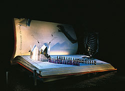 會知道這個地方,是在一九九九年偶然看到照片:一片湖光山色中,一個骷顱人,翻著一本書,穿著華服的人們,魚貫從書的破洞走出。