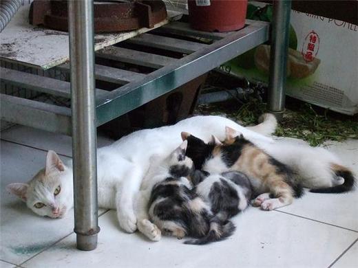 圖一:糕怪斜眼看我拍牠奶四個小孩。