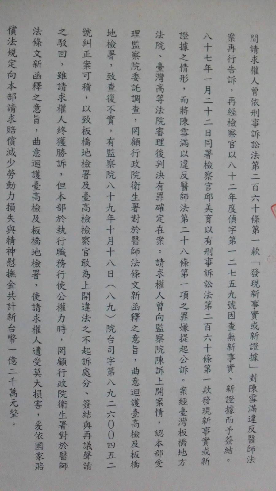 監察院抓到國民黨司法官員集體違法提出糾正文民進黨陳水扁的法務部長陳定南沒有提出任何駁回糾正事項理由就枉法駁回周鳳山ˇ國賠聲請。 陳定南拒絕【國賠】