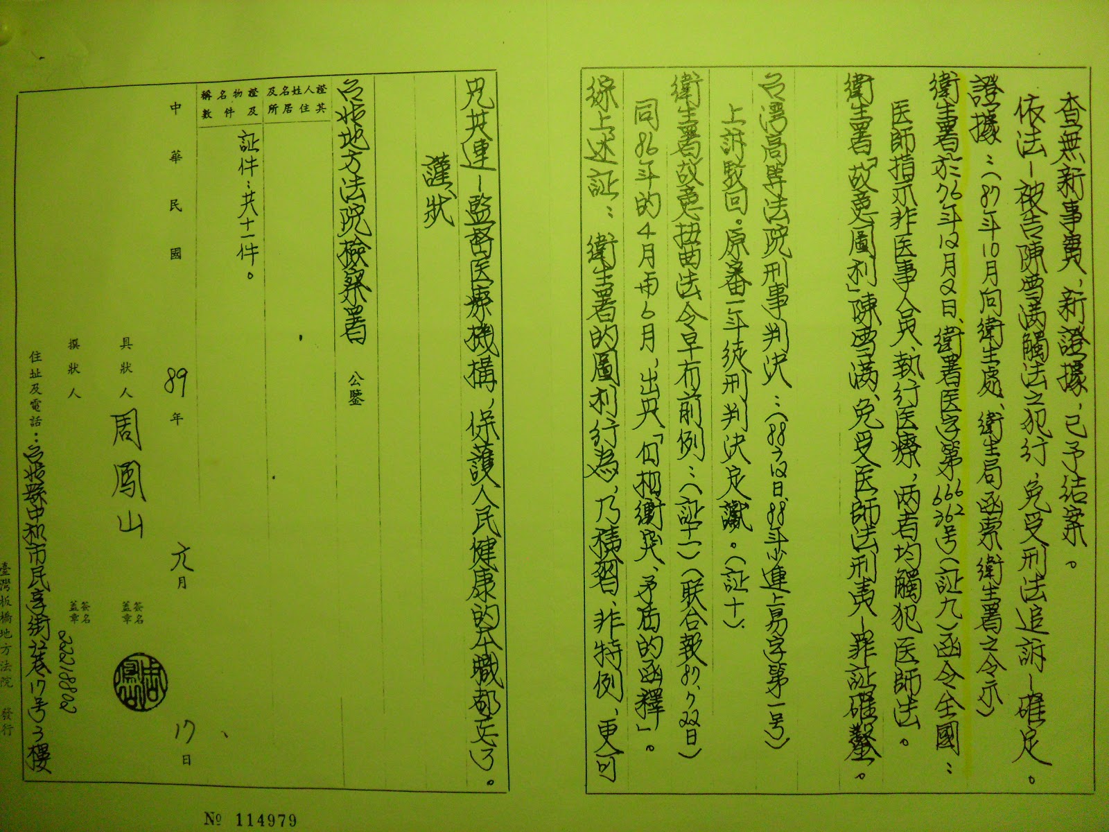 從民國79年女兒周昭瑞發生〔醫療誤診致死、教唆違反醫師法、遺棄致死、教唆偽證〕