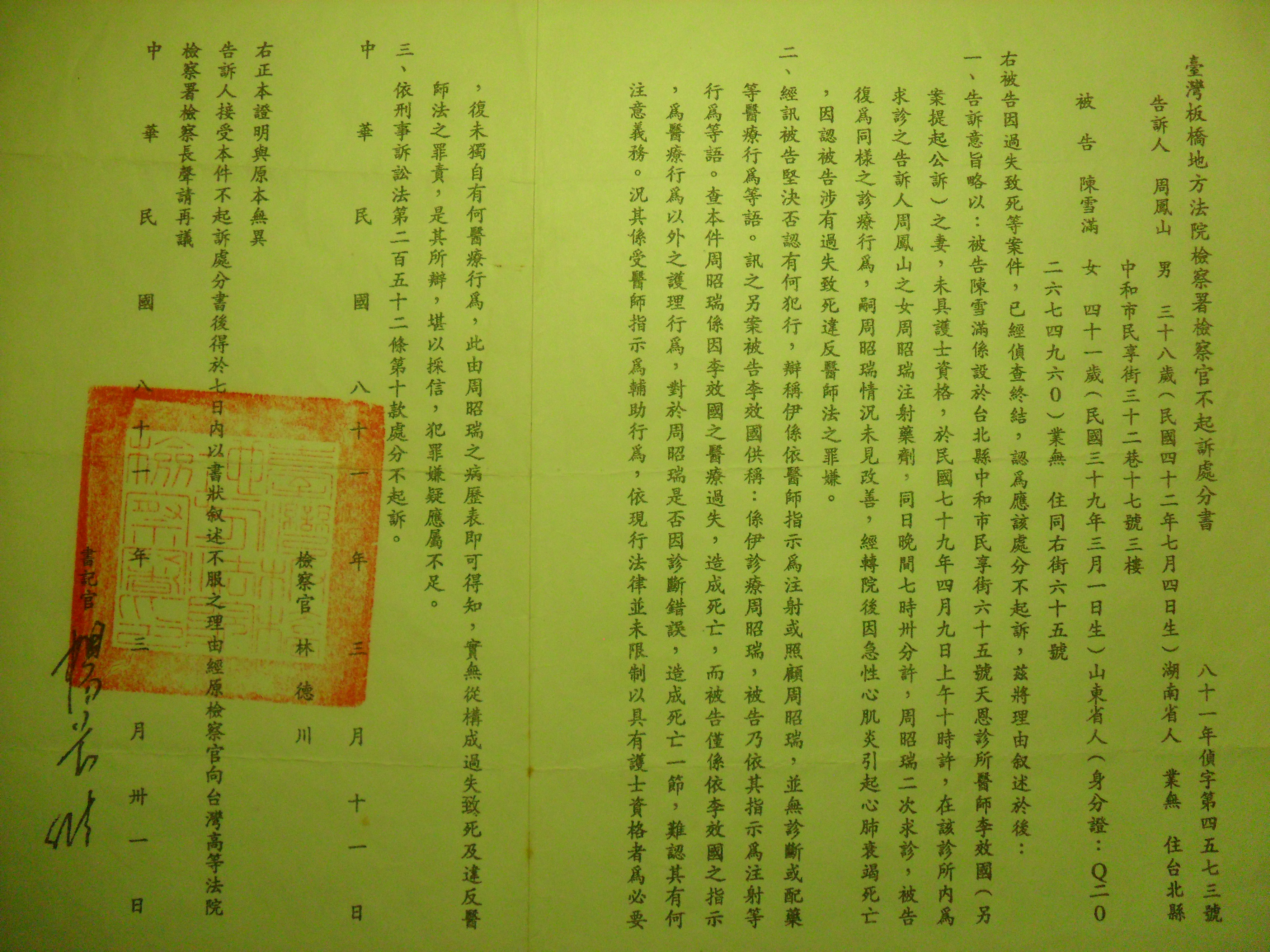 請諸君看清楚▃▃民國79年的周昭瑞小妹妹的性命冤案;