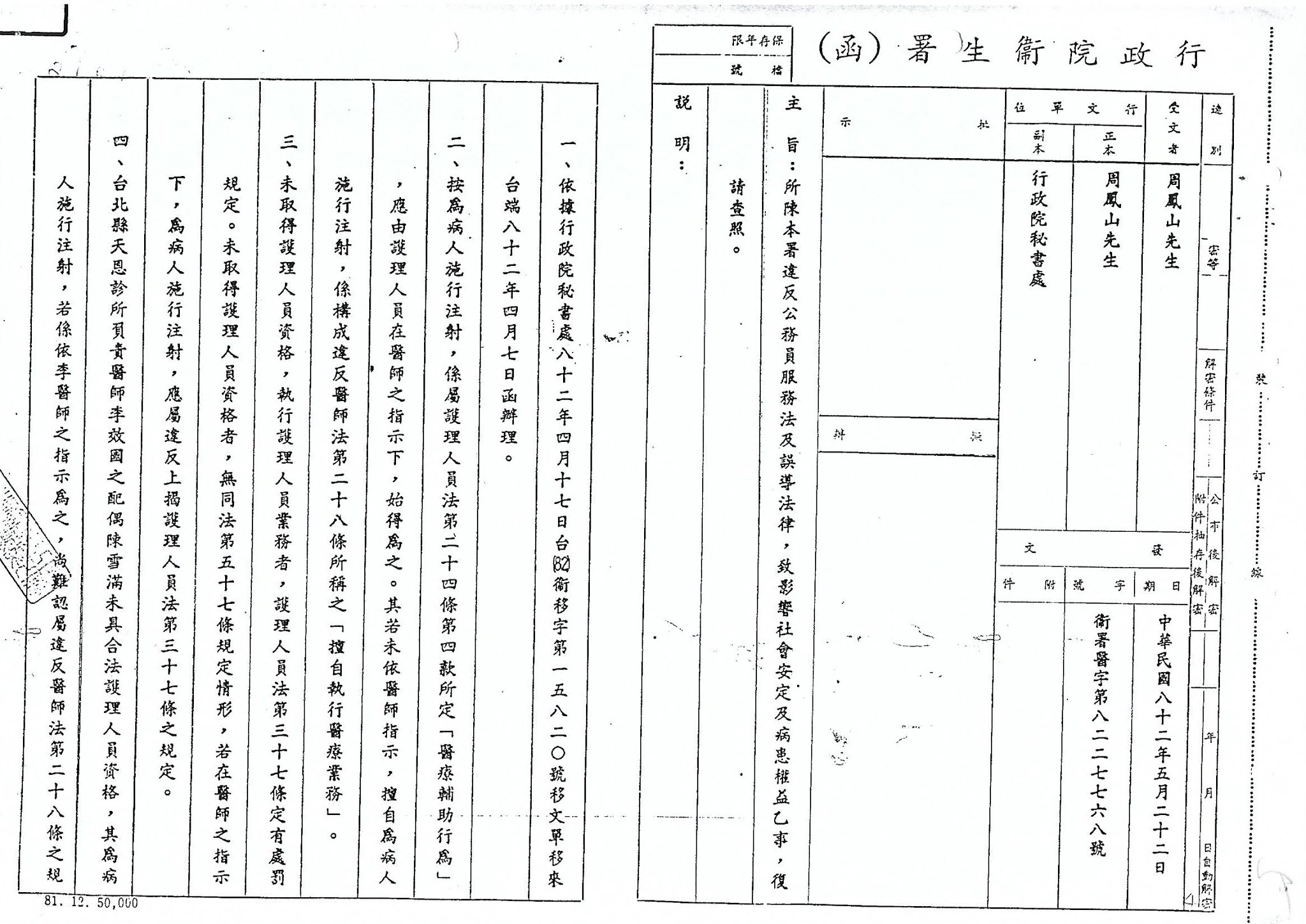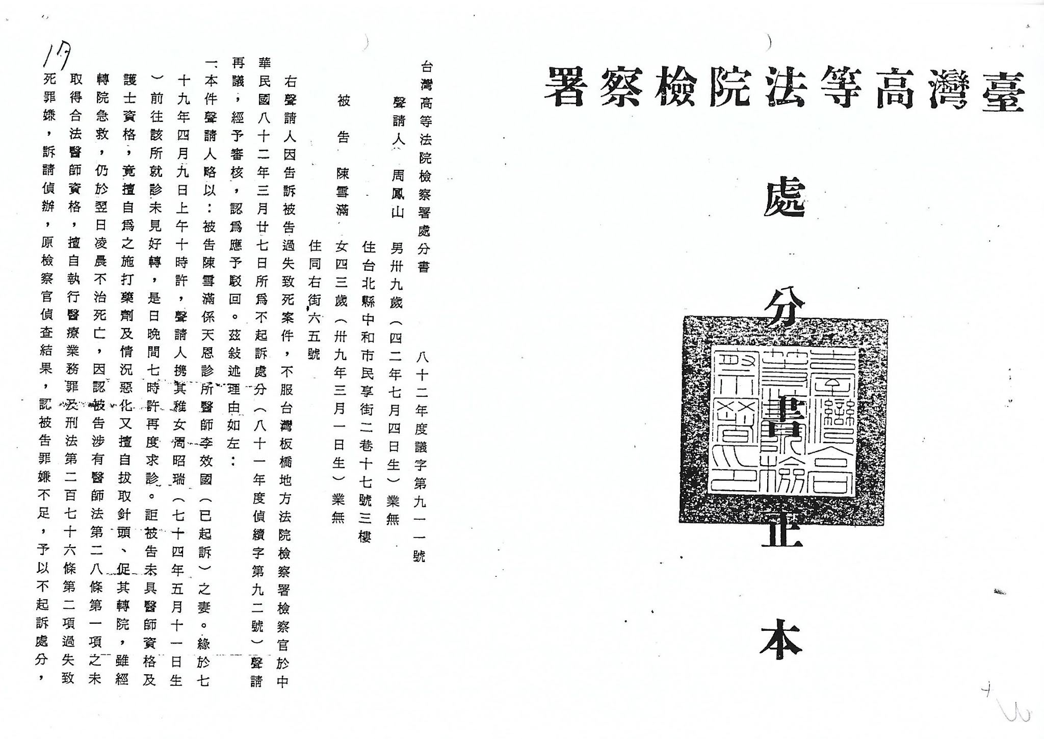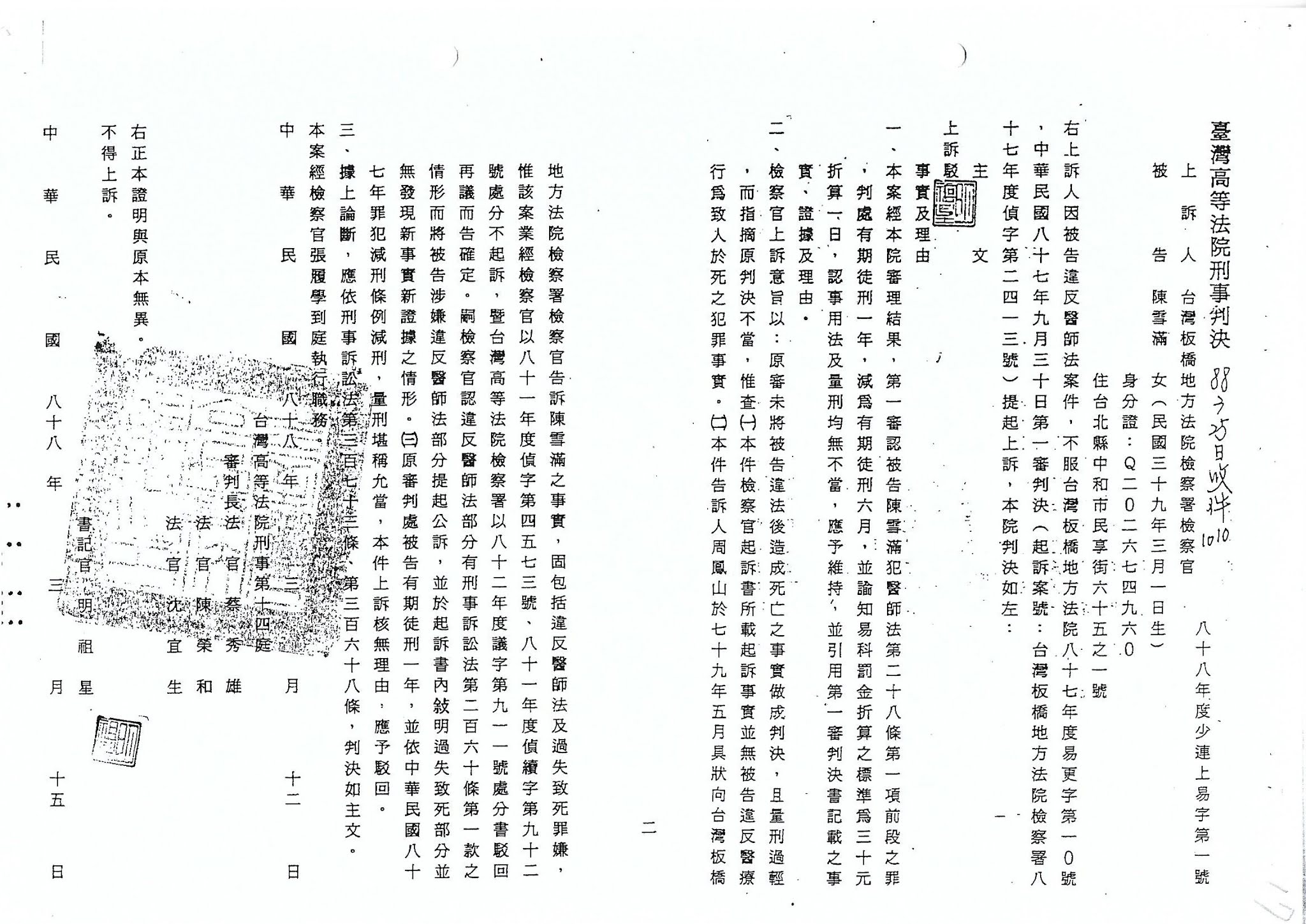 曾經在民國81年8月7日▃▃ 偽造公文書、瀆職..............