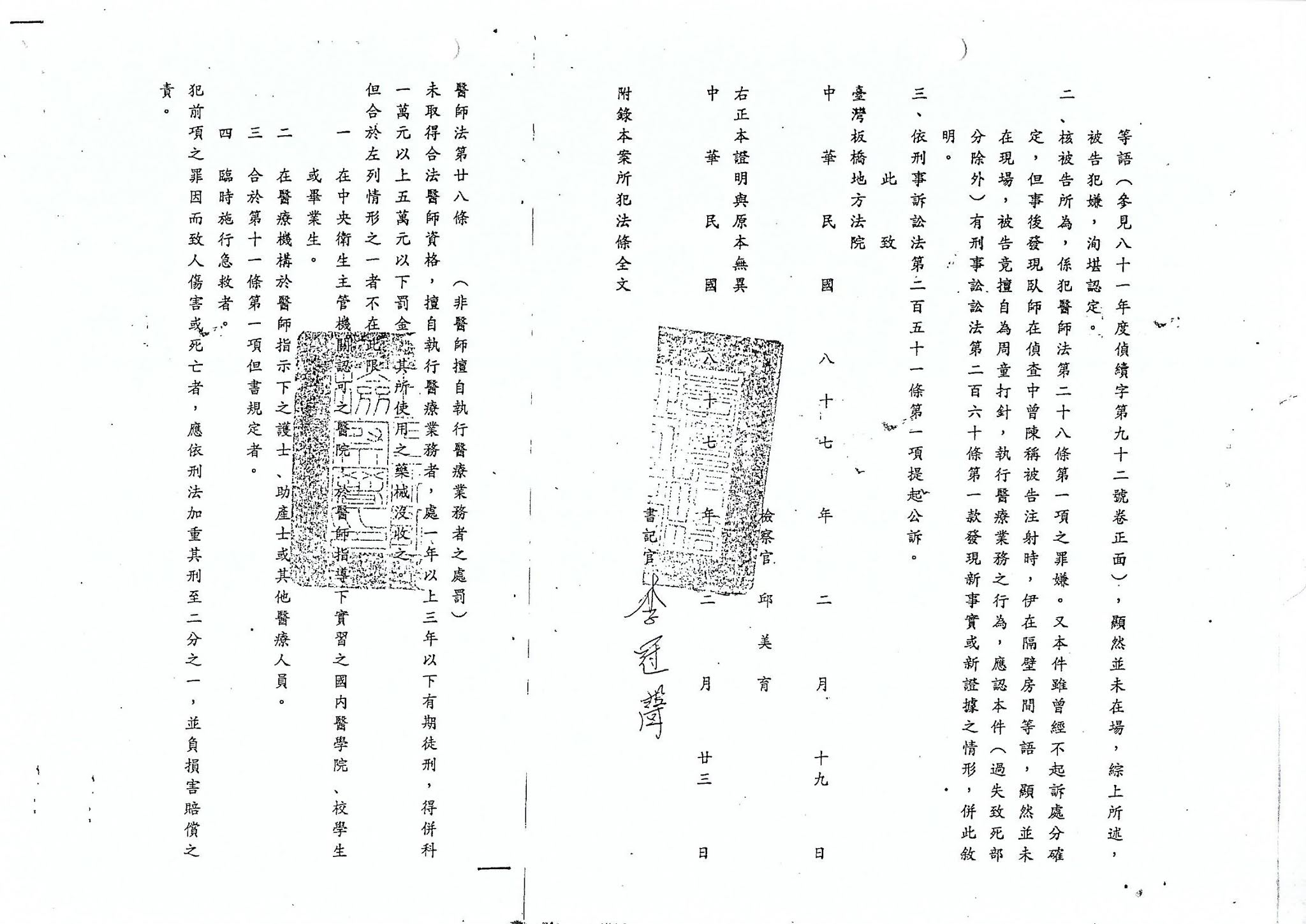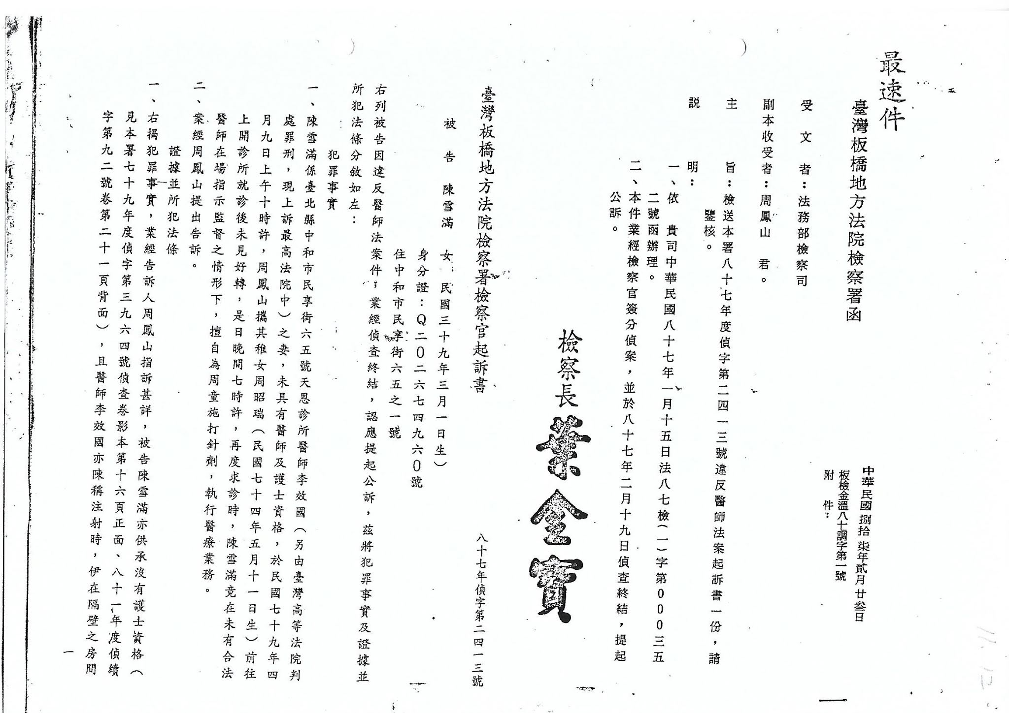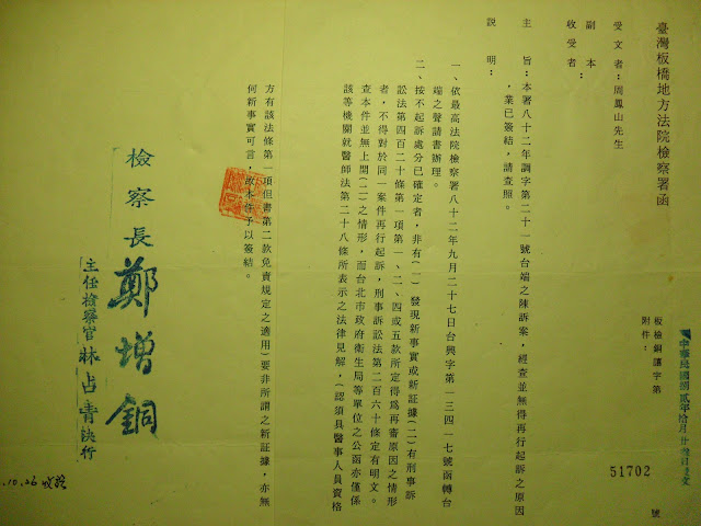 板橋地方法院檢察署兩位檢察官和台灣高等法院高檢署檢察官、檢察長