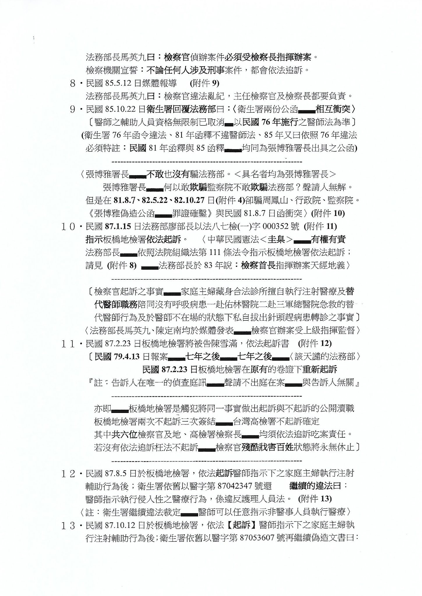2..都、都、都沒有依照中華民國的憲法、法律依法行政還弱視命案苦主公平、正義外;