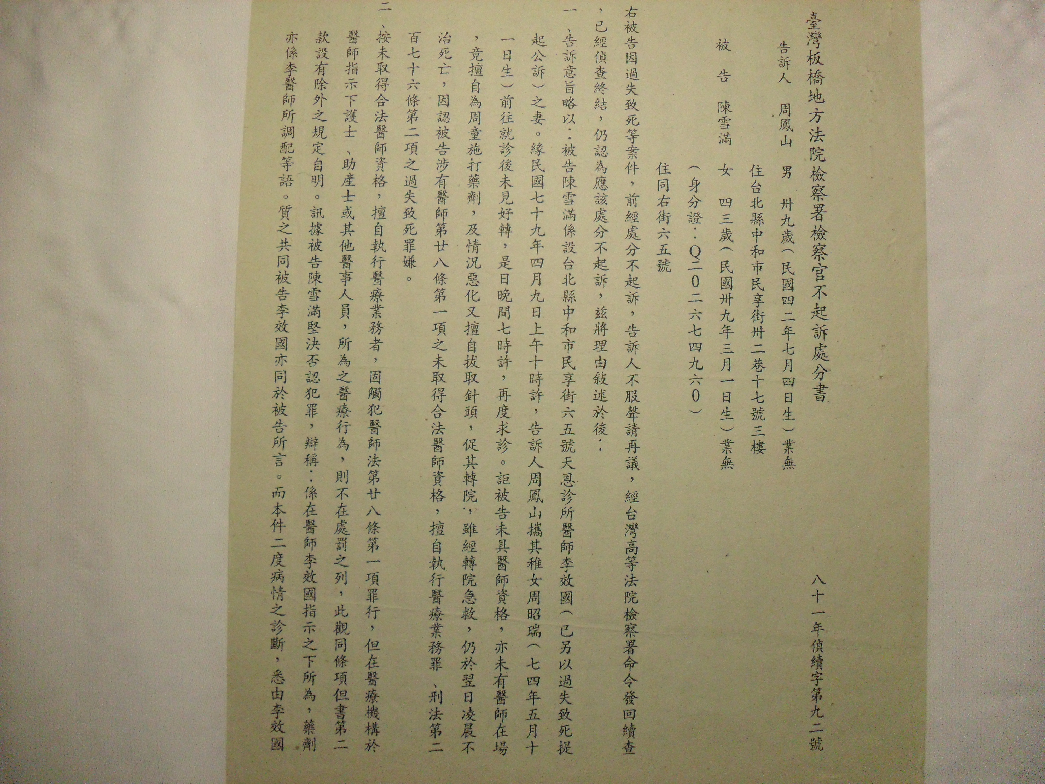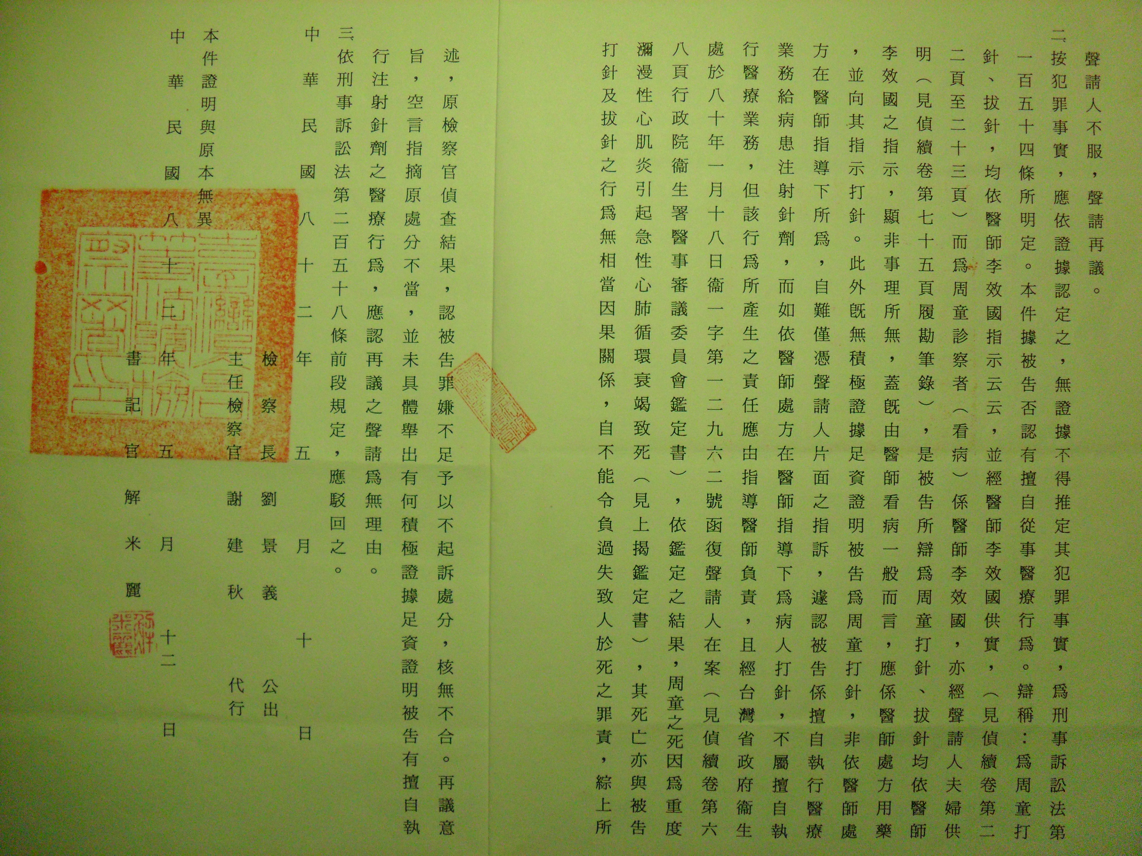 (2020.10.22日 貼文稿) (民國109年10月22日) ▅▅▅▅長達十年期間檢察官公開吃周昭瑞小妹妹命案▅▅無人總統、行政院長都不 監督管▅▅周鳳山於長達5年的時間到處碰壁每每無法成眠自然也無法工作養生;【命 案被告供實之醫療誤診違法注射針劑當天死亡還包括【法官、簡察官協力縱放】縱放 罪證確鑿的偽證林月秋;周昭瑞小妹妹命案中〕 細細分析▅▅如此公開折磨、凌遲「命案苦主周鳳山」▅▅是中華民國法務部長【故 意的違法作為(法務部長總統、行政院長無人敢管)】,也就是俗所說的在那個當下法務部〔拉不下 臉皮主持公義〕,司法公權力將非法不起訴「故意不起訴拖到十年後」,才發公函給 板橋地檢署指示「依法起訴」如此乖張的過程,要讓人不注意都很難........結果是▅ ▅落了一個把柄給周鳳山【抓著】何苦來哉? 更無端導引出▅▅「命案苦主周鳳山」▅▅具此向監察院聲請依法追究法務部;國民黨 的法務部、最高檢、高檢、地檢▃▃「可以飛天,也可遁地的▃▃▃自由自以為『神』 」集體結夥監察院具違法事實,提出糾正文;中華民國行政程序體制,層層節制完全腐 敗( 已經破爛不堪 )▃▃▃國家成立的功能完全失效。 國家▅▅像極了【幫、派組織、結構。只有個稟持公義的的監委,是唯一的區別。〕 https://www.cy.gov.tw/News_Content.aspx?n=124&sms=8912&s=3723 於是▅▅蔡總統專機私菸案 蔡總統專機私菸案於是發生了。而後,更引發了海運貨櫃公開的走私香菸。 》( 蔡總統專機結夥集體私菸案於是發生了 又發生海運貨櫃公開的走私香菸。 貨櫃走私香菸https://www.youtube.com/watch?v=1AD7KJTix5M 【私菸案正名】林佳龍:不是超買,「就是走私案件」 https://www.upmedia.mg/news_info.php?SerialNo=68128 ) 〔重點在集體▅▅民進黨總統專機〕 ( 蔡總統專機結夥集體私菸案於是發生了 貨櫃走私香菸於是發生了https://www.youtube.com/watch?v=1AD7KJTix5 民國79年4月發生了一起醫療誤診混合當天死亡周昭瑞小妹妹命案後,有醫師公會來電 要談談 〔這兩位自生是醫師公會代表李效國醫師,兩位似乎不耐久坐,開門見山的說醫院願意 以五十萬元和解,你若不接受ˋ這筆錢就是打官司〕的律師費,感覺這兩位當我鄉下人 拐,當即請他們出門不必再談▅▅▅▅▅到再談時,卻是民國83年2月23日上午是由板 橋地院陳橫寬法官主動、主動出面要主持和解。 板橋法院81訴字758號周昭瑞小妹妹的爸爸周鳳山百思不解▅▅民國79年5月▅▅民國 83年2月▅▅近四年默不作聲▅▅(這四年間偵訊不僅一再說謊甚至教唆偽證《絕對不 能放過的偽證林月秋<天啊!法冠、檢察官協力縱放偽證】請老天行行好開開眼▅▅▅ 這樣的發 展命案苦主唯有死路一條;▅▅▅這樣的發展命案苦主唯有死路一條; 眼命案苦主唯有死路一條;命案苦主唯有死路一條!!!!!>》在法官<特別註:周 昭瑞小妹妹命案▅▅法院在「束手(玩不下去了」之後又【玩】了台灣司法僅有的案, 換四個法官審理的花樣也拖延遲了長達兩年九個月之九,、在下也因此抓到一個將【命 案破局的證據( 想看中華民國的司法會、能怎麼處理。>當庭被周鳳山親手逮穿幫 ▅▅ https://photos.google.com/share/AF1QipP_wP3CcWvufADKTZ3pr5cp9xHeN4YHjvu5iynnibPGRGh9mnqq9ZBOQetrO0AILg?key=TDBnQjJxNnBLSXoxVWZCWTlvaWpRSFV3SE5qUGVB 請諸君看清楚這一份公函最末一張存在一個很大、很大世界級的大笑話,懂民主、法治是什麼東西知識者,都會看得出來,只有像民進黨這種明為法理、人權,暗為爭權搞錢不但由魔人陳水扁、陳定南開起了【民進黨一切只為錢、勢的魔人黑底】例;人口負成長恐提前1-7月出生低於死亡人數 https://www.youtube.com/watch?v=Odzf4zC8drQ 〕 家庭主婦沒有醫事人員執照擅自在診所為患者注射還致求診患者周昭瑞小妹妹病情惡化 死在現場外。又併發當求診患者周昭瑞小妹妹失去意識沒有呼吸當場死亡要求醫師急救 ,醫師並未即時急救,卻作出喪盡天良的醫師一直不停用趕出去的手勢,作勢把已經沒 有呼吸的的周昭瑞小妹妹喪盡天良的醫師一直不停用趕出去的手勢,作勢把已經沒有呼 吸的的周昭瑞小妹妹 【教唆偽證出兩個不同庭相互矛盾供詞庭作偽證▅▅地、高察署共伍次枉法不起訴確定 。 天啊!法官、檢察官竟然公開協力吃掉偽證林月秋,這樣的狀態命案苦主只有死路一條! 台灣從此完全失去了可盼的朗朗晴空了!〕 〔兩被告所教唆的偽證▅▅簡單的說是因偽( 第一次偵查的檢查官將這一件命案分成 兩個案;一、醫師李效國業務過失致死案起訴移送板橋法院審理。 第一次偵查的檢查官將這一件命案分成兩個案; 二、檢察官將沒有一是人員資格擅自失行侵入性違法注射醫療造成死亡的家庭 主婦公開的【枉法不起訴】。〕 經國民黨的地檢一直作出【重複趕出門的手勢。周昭瑞小妹妹的爸爸無可奈何的抱起沒 有呼吸周昭瑞初診所放在自己門口的轎車上,就在當時周昭瑞的周爸爸對於自己的動作 也覺得不妥,就在同時要求診所醫師必須隨同送大醫院急救。結果是診所醫師指示其家 庭主婦為職業的太太陳雪滿作上了我的轎車 〔周昭瑞小妹妹命案在偵察庭偵訊時,周昭瑞小妹妹的爸爸周鳳山 ( 百思不解▅▅這位 醫師太太陳雪滿▅▅代替醫師職務時,,怎的這麼理所當然?偵訊時還特別請檢察官詢 問醫師太太陳雪滿▅▅的職業▅▅陳雪滿自稱是家庭主婦〕隨同送周昭瑞小妹妹大醫院 