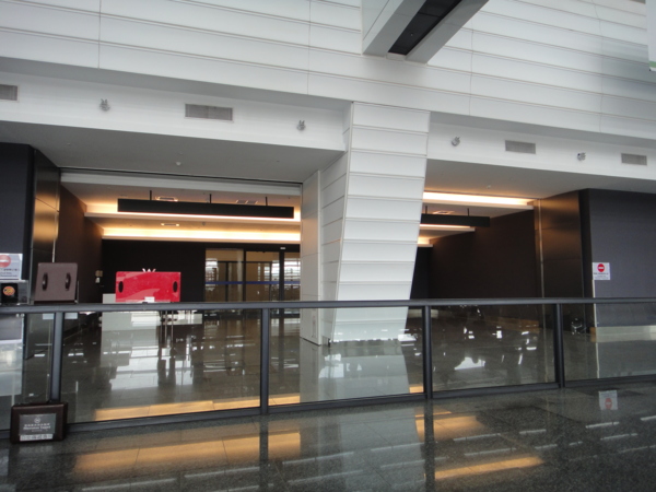 奇怪的設計 - 整修後的第一航廈接機大廳模樣,中間一個<巨>大的柱子擋住接機者和被接者之間的視線,又少了原先有的電視。真不知設計者和核准設計者心裡想些什麼?