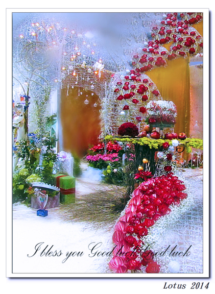 那年聖誕節,我第一次進到那個神秘基地,大廳人多,他帶我避開人群,從小門進到另一個小房間,房裡有個大書櫃擺著各式各樣的書,壁架銀色的燭台點著修長的白蠟燭,熠耀的燭光一閃一閃,把整排聖誕紅映得溫柔極了!