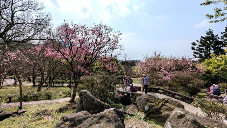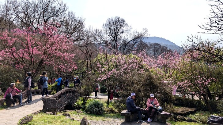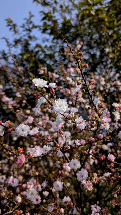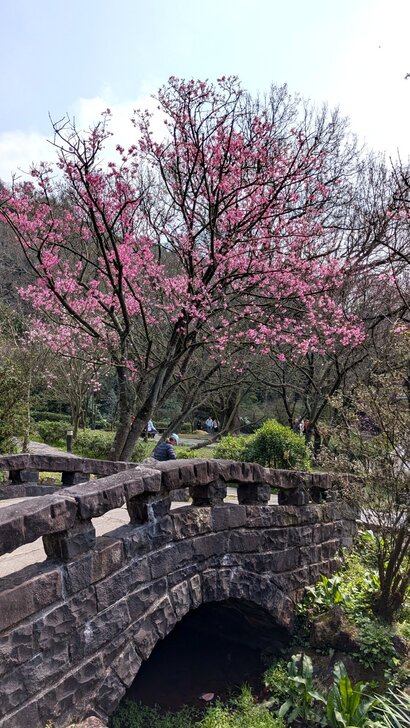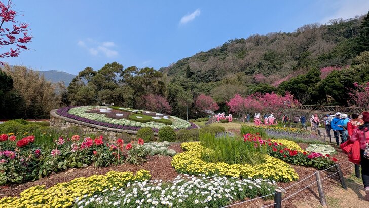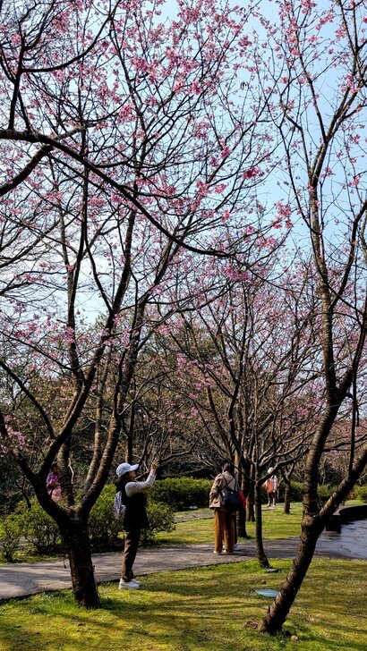 這時的花鐘可熱鬧,旁邊幾株八重櫻開得鮮豔,遊人如織.↑↓