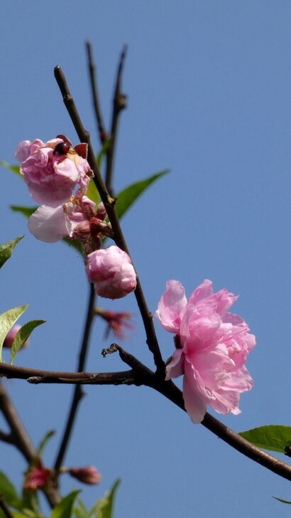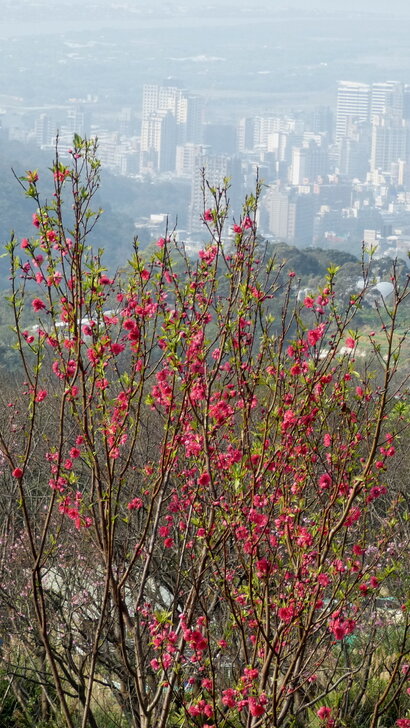 這裡也有一株杏花(碧桃花),不過開得沒有很盛,龍鳳谷站剛走東昇路上來那裏,有幾株粉紅及白杏(碧桃花)開得不錯!↑