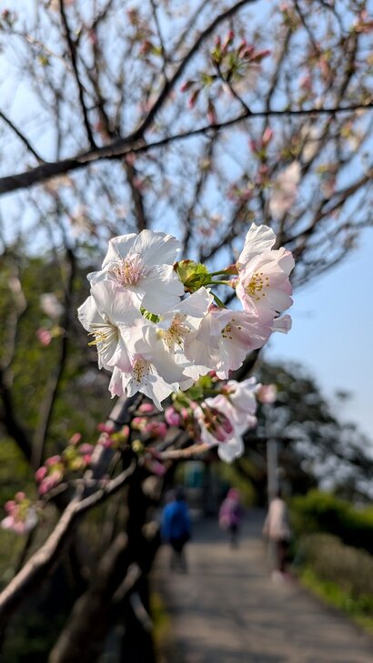 上到東昇大馬路上,往風尾步道走去,沿途還是不少櫻花開.↓